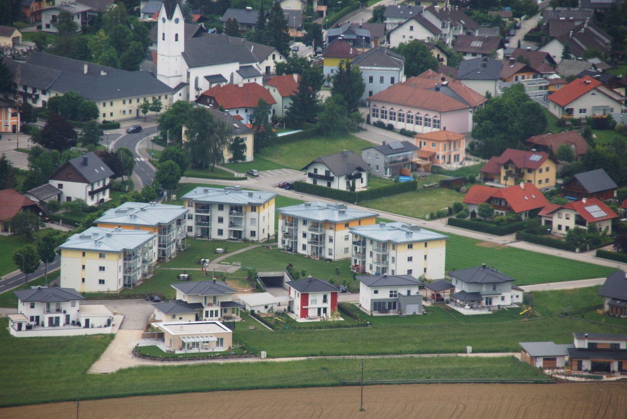 Vor genau 10 Jahren wurde in Gschwandt die Wohnanlage der gemeinnützigen Siedlergemeinschaft Traunsee in der Gmundnerstraße im sogenannten Pfarrfeld fertig errichtet und bezogen. Am Ortsbeginn Gschwandt liegend fügt sich diese Anlage gut in das Ortsbild ein, wie auch die Flugaufnahmen zeigen. Die fünf Wohnbauten sind so ausgerichtet, dass alle Balkone in Richtung Innenhof ausgerichtet sind und über der Tiefgarage sich ein netter Aufenthaltsplatz für gemeinsame Treffen und ein kleiner Spielplatz mit viel Rasenfläche Platz gefunden hat.