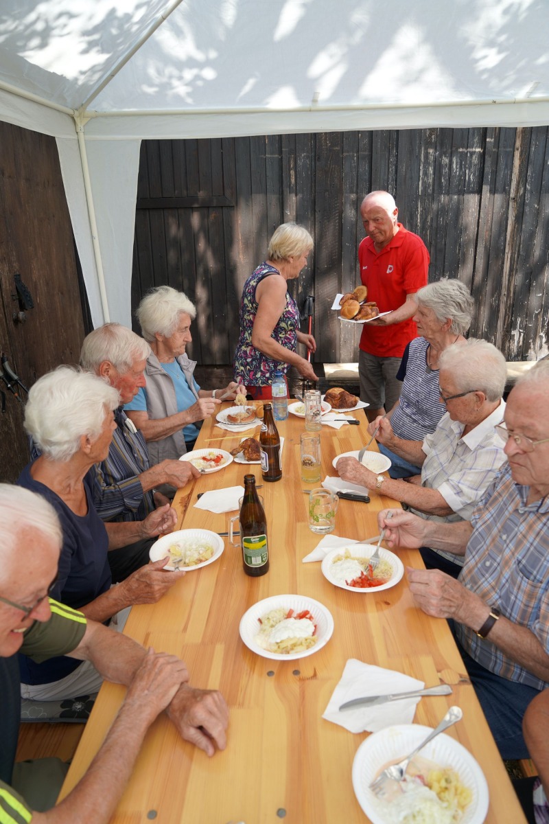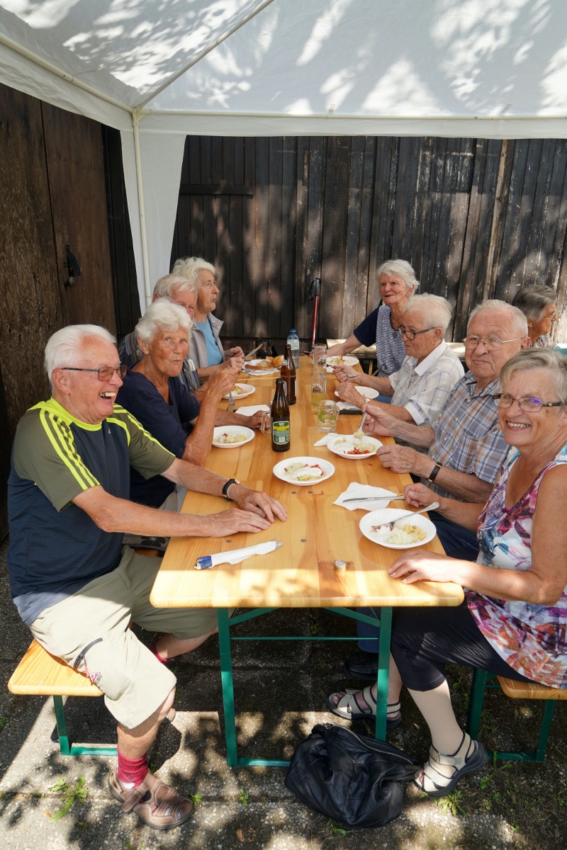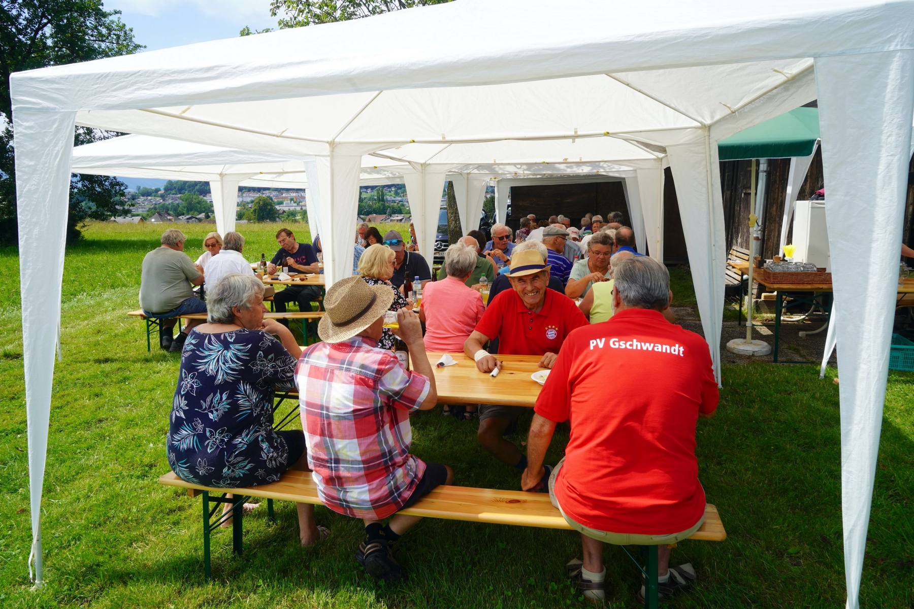 Es war eine lange Zeit, aber am 28.7.2021 war es dann so weit! Hurra heute feiern wir, die Vereinsleitung des Pensionistenverbandes Gschwandt unter Obmann Kurt VIERTBAUER lud alle Mitglieder zum „Grillfest in der Hütte“, quasi im Vereinsquartier in Baumgarten. Viele fleißige Hände stellten am frühen Vormittag Zelte und Tische auf, das Besteck wurde bereits auf den Tischen vorbereitet, Speisen und Getränke sind später auch serviert worden, um ein Gedränge bei der „Küche und Ausschank“ zu vermeiden. Auch wurde eine Liste der anwesenden Personen angelegt, um ev. Coronavorschriften udn Regeln gerecht zu werden.