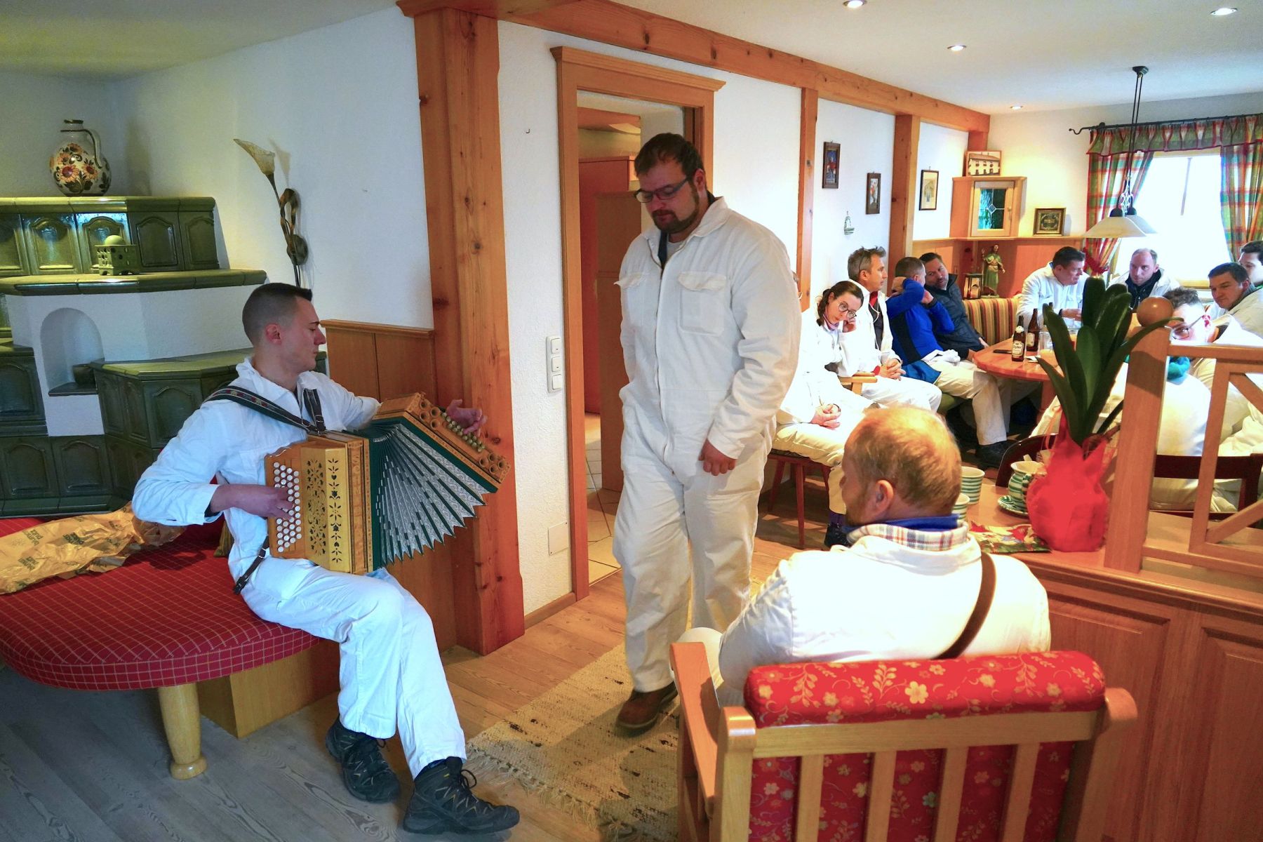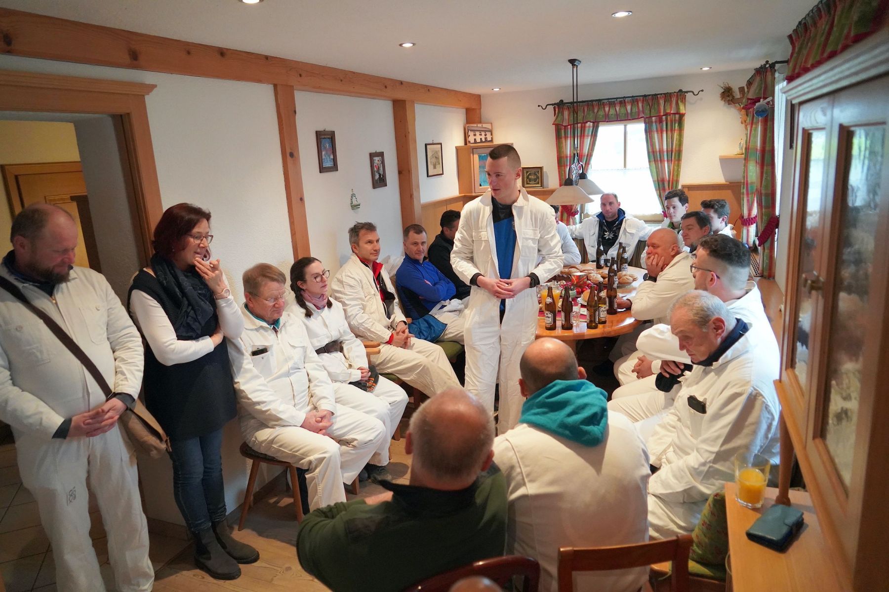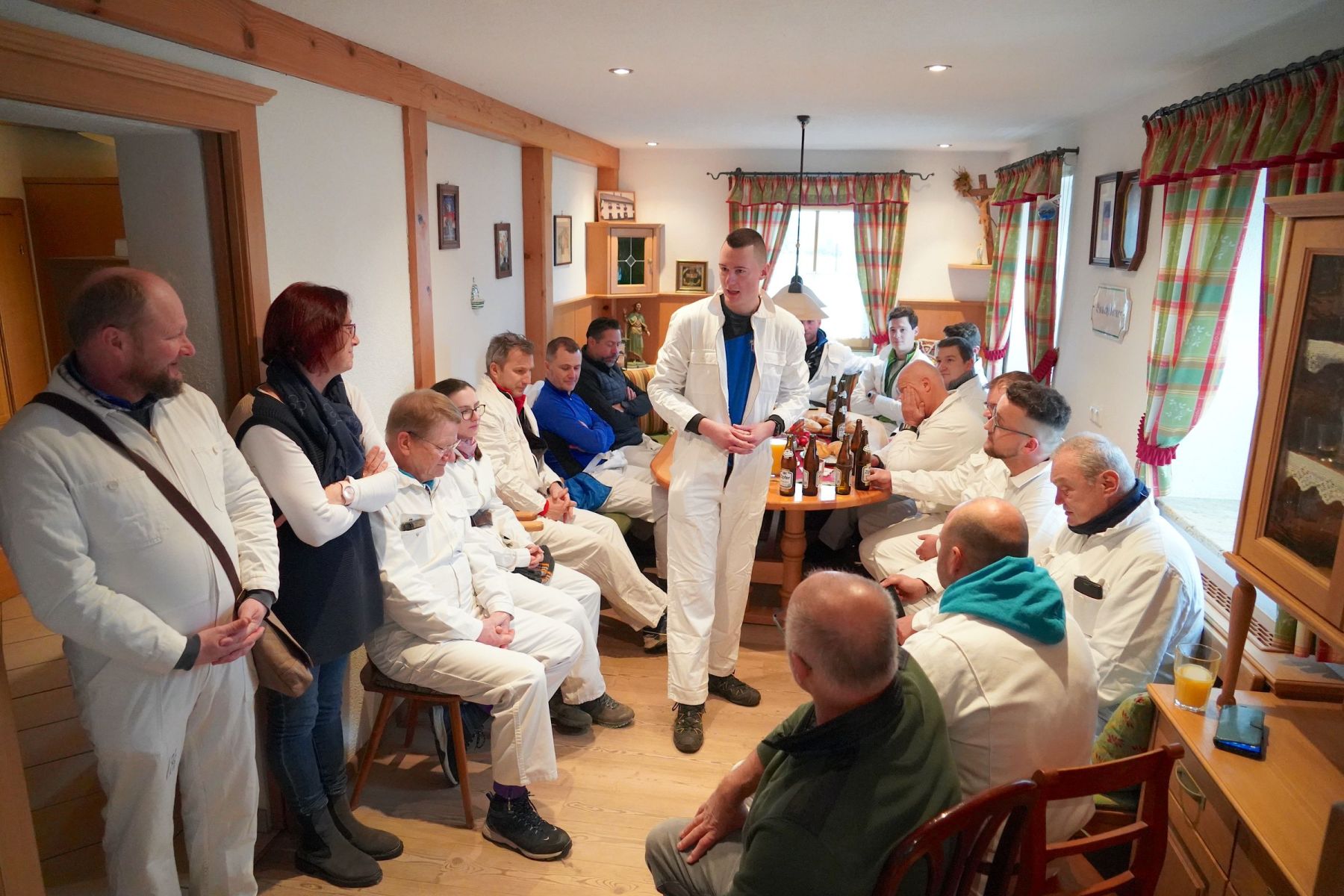 Wie verhext war das Wetter am Glöcklertag 5.1.2023. Am Vortag noch relativ gutes Wetter, am Tag danach angenehmes Wetter ohne Wind und Regen und akkurat am Glöcklertag Donnerstag 5.1.2023 Regen, Sturmböen und richtiges Schmuddelwetter. Doch trotzten einige Glöcklerpassen diesen Verhältnissen und zogen den Glöcklerlauf durch. So auch die Traditionspass „TRAUNSTOANA“ in Gmunden, die bereits seit 35 Jahren diesen tollen Brauch des Glöcklerlaufes durchführen. Um 9:00 Uhr vormittag trafen sie die 20 Mitwirkenden im Glöcklerquartier „Bauchtbauer“ und bereiteten sich auf den Tag der Tage vor. Nach dem Einsingen der Glöcklerlieder in der Bauernstube mit Dankesworte an die Hausherren hieß es um 10:00 Uhr Kappen aufsetzen und in Richtung Stadt losmarschieren.
