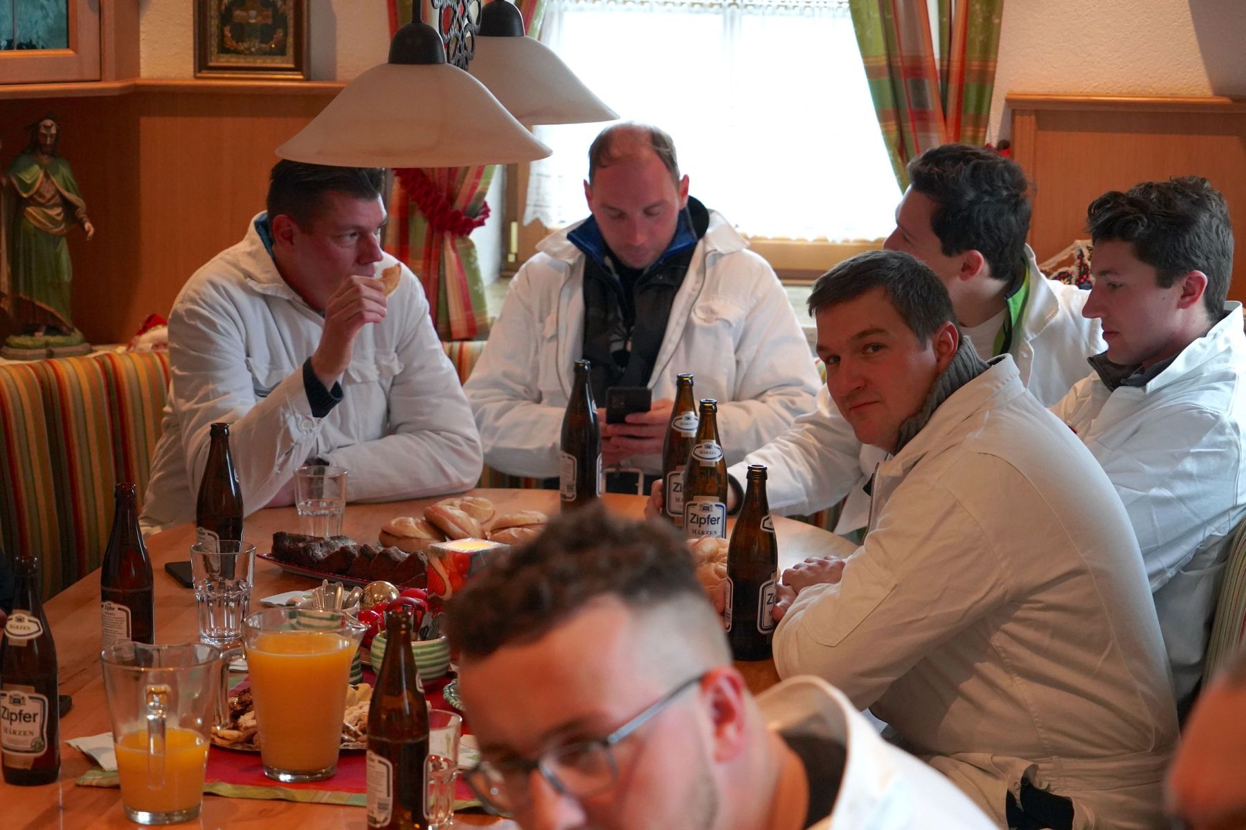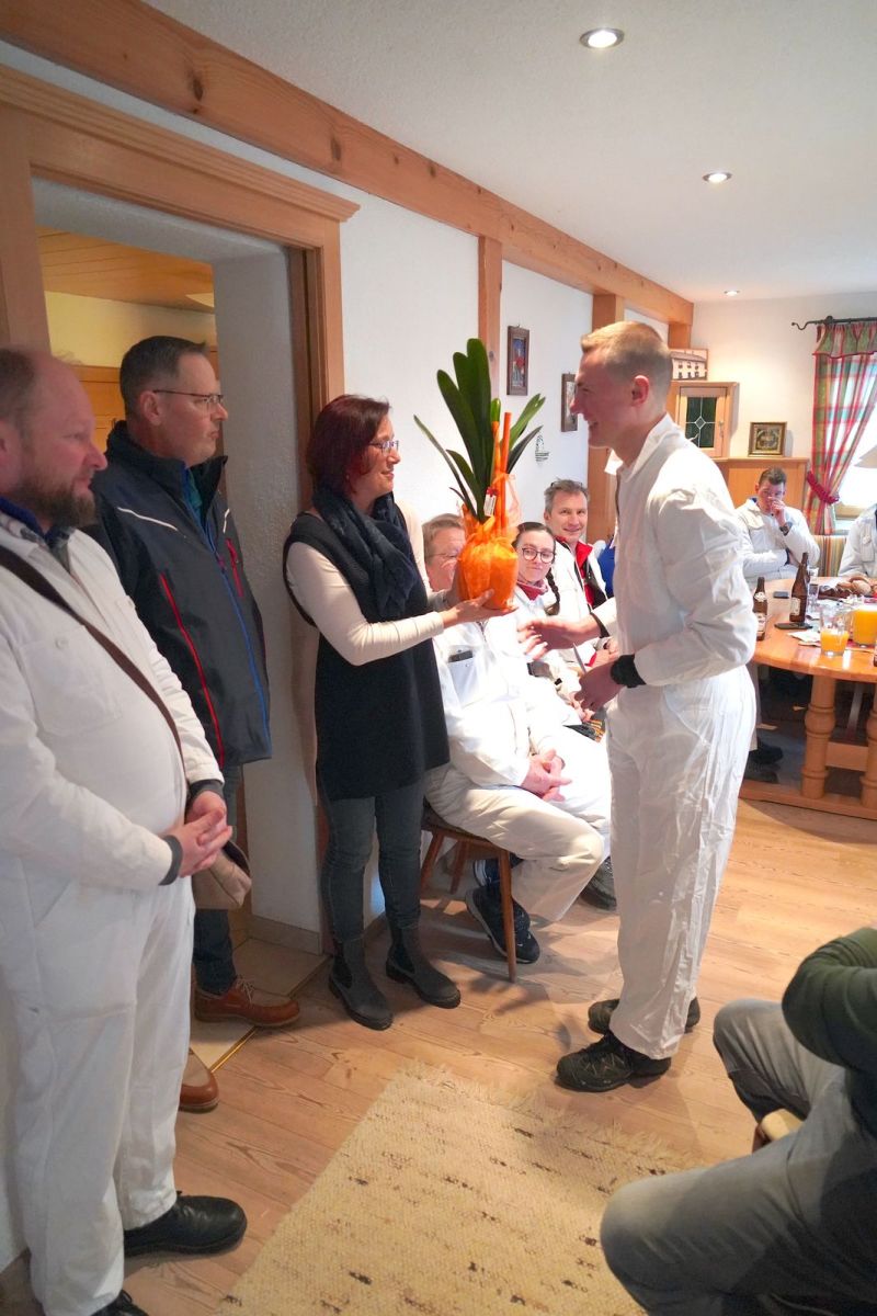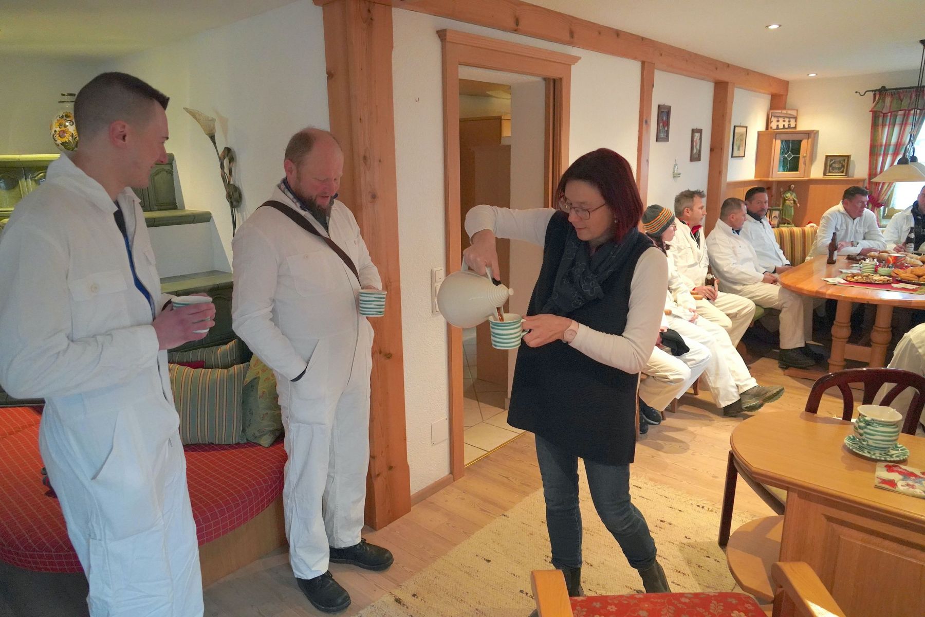 Wie verhext war das Wetter am Glöcklertag 5.1.2023. Am Vortag noch relativ gutes Wetter, am Tag danach angenehmes Wetter ohne Wind und Regen und akkurat am Glöcklertag Donnerstag 5.1.2023 Regen, Sturmböen und richtiges Schmuddelwetter. Doch trotzten einige Glöcklerpassen diesen Verhältnissen und zogen den Glöcklerlauf durch. So auch die Traditionspass „TRAUNSTOANA“ in Gmunden, die bereits seit 35 Jahren diesen tollen Brauch des Glöcklerlaufes durchführen. Um 9:00 Uhr vormittag trafen sie die 20 Mitwirkenden im Glöcklerquartier „Bauchtbauer“ und bereiteten sich auf den Tag der Tage vor. Nach dem Einsingen der Glöcklerlieder in der Bauernstube mit Dankesworte an die Hausherren hieß es um 10:00 Uhr Kappen aufsetzen und in Richtung Stadt losmarschieren.