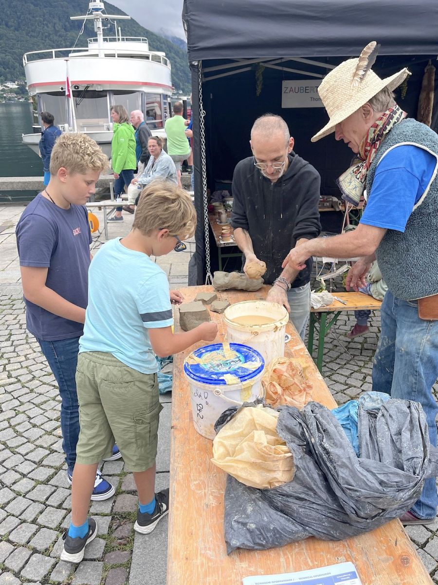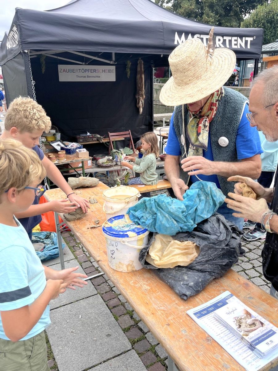 Unterschiedlichste Techniken, Dekors und Stilrichtungen dieses Handwerks haben das Publikum aufs Neue begeistern. Auch heuer haben sich wieder neue Werkstätten vorgestellt und dies freute die Marktverantworliche Eva Fürtbauer ganz besonders. Der Töpfermarkt ist nicht nur eine gute Gelegenheit für Besucher und Liebhaber der Keramikkunst einen guten Überblick über die europäische Keramik-Szene zu bekommen – es ist auch bestimmt für jeden Geschmack etwas dabei! Dies konnte man auch bei den Besuchern mit vielen Einkaufssackerl erkennen. Besonders beliebt war auch die „Zaubertöpferscheibe“ von Thomas Benirschke, auf der die Kids eigene Töpferkunstwerke herstellen durften.