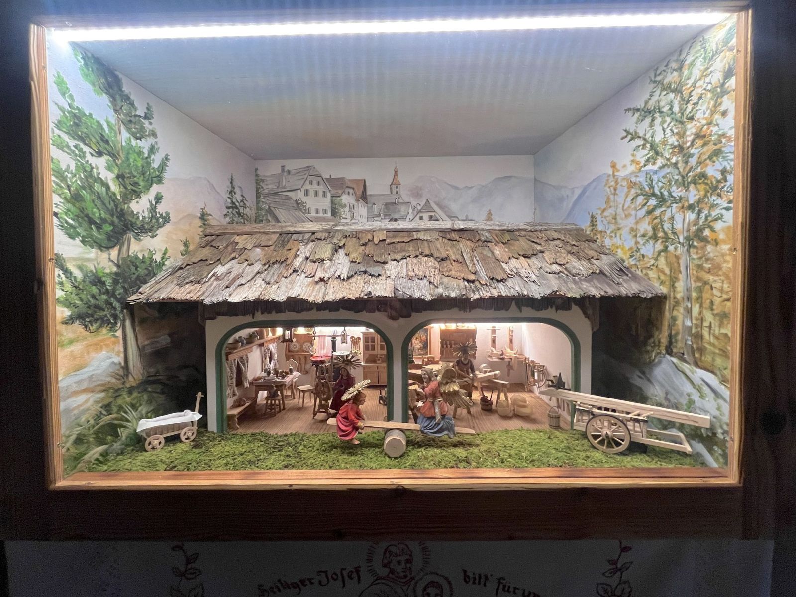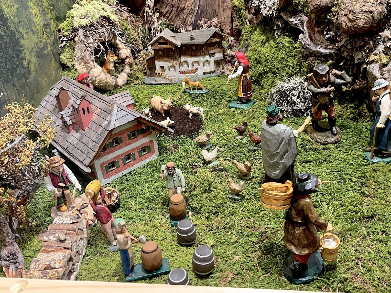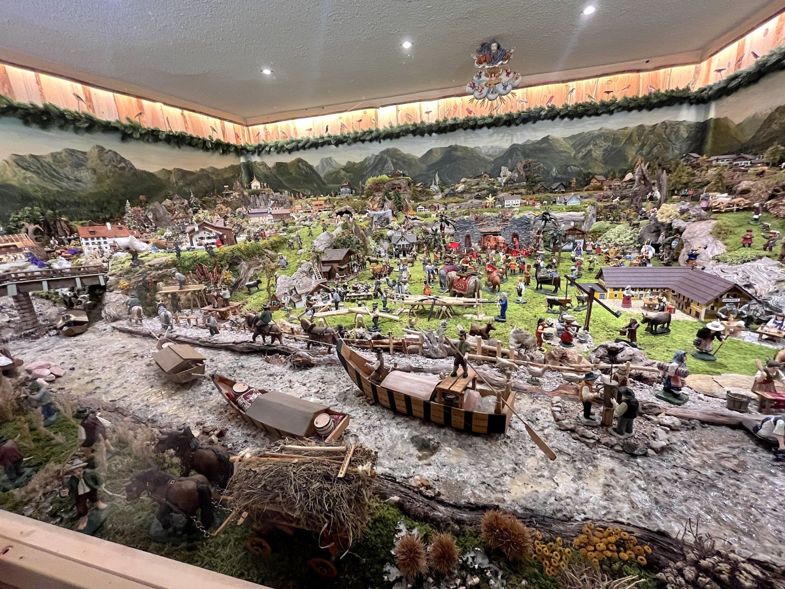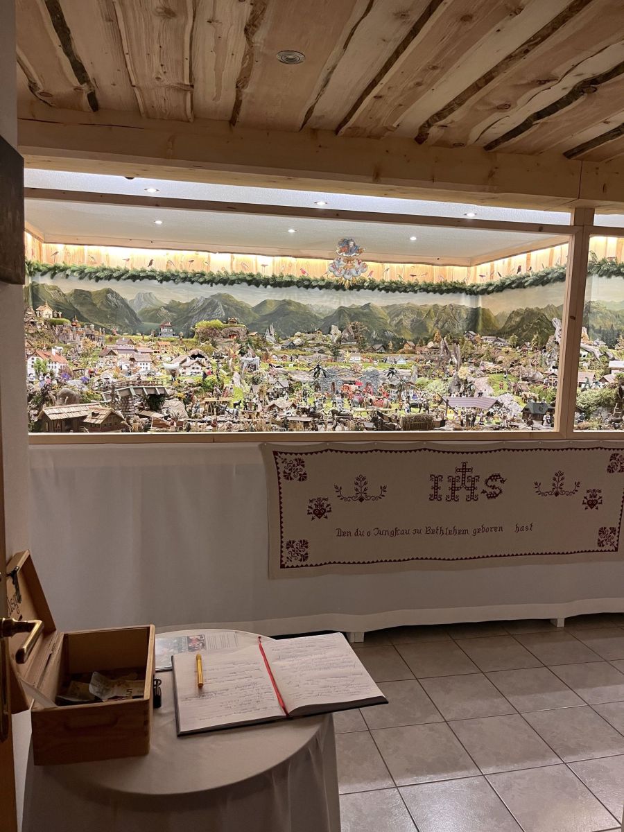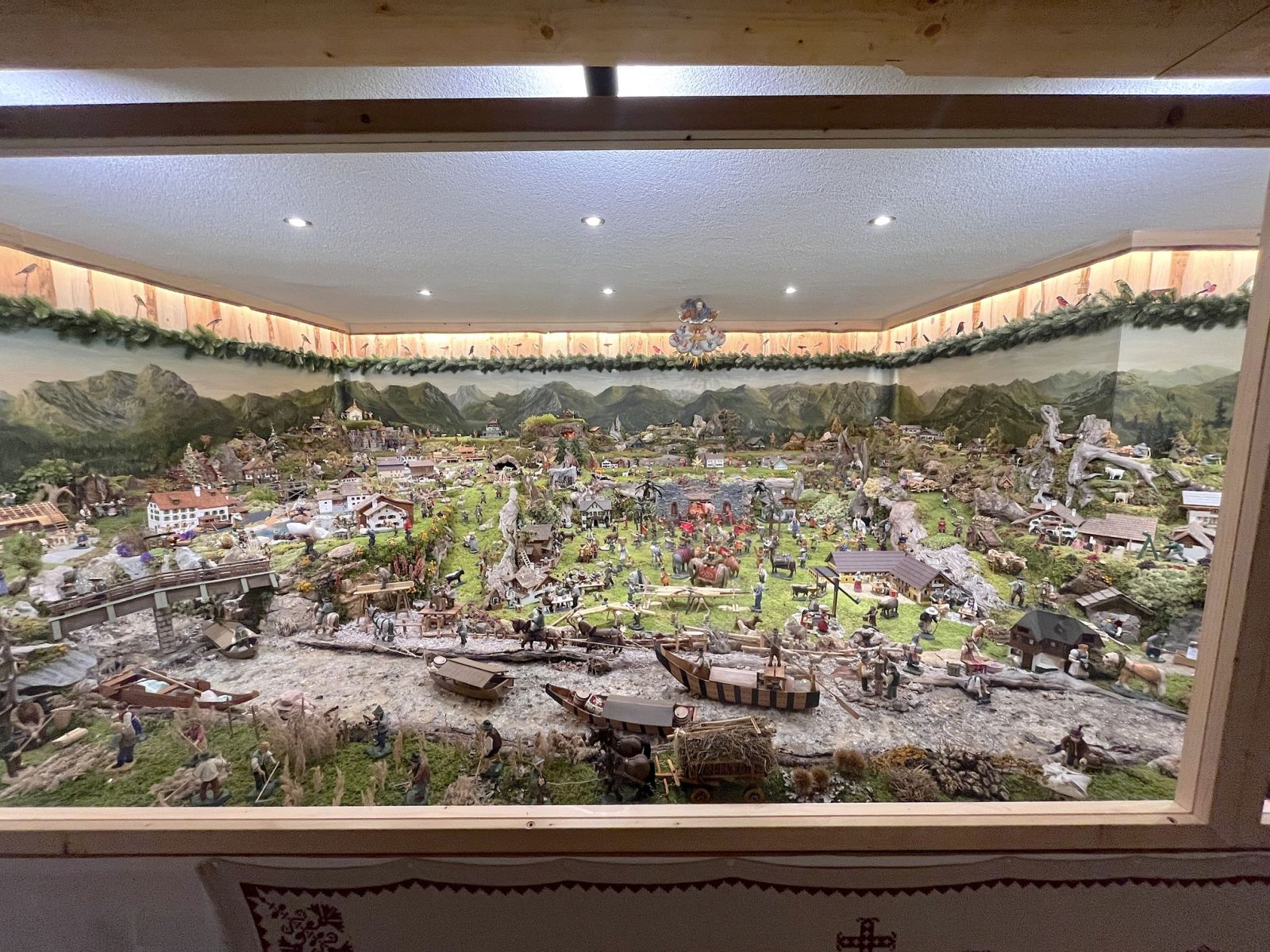 Noch war es möglich des Krippöschaun in Ebensee. Und das nützten wir am Montag 27.1.2025. Unsere acht köpfige Gruppe machte sich auf den Weg, der uns als erste Station zur Familie Franz Stüger vulgo Ka°librenner Krippe in der Heisslfeldsiedlung führte. Franz Stüger begrüßte uns recht herzlich und führte uns in Richtung seiner Krippe. Im Vorraum waren in liebevoll gestalteten Vitrinen Stationen rund um das Krippengeschehen aufgebaut und dann öffnete sich die Tür zur wohl größten Krippe des Salzkammergutes. Unbeschreiblich was da der Krippenvater in mühevoller Kleinarbeit in 3-4 Wochen geschaffen hat. Ca 900 Figuren und Tiere haben in der Krippe Platz gefunden. Auch viele Häuser und Hütten des Salinenortes fanden ihren Platz und wurden uns von Franz namentlich genannt. Die typischen Figuren einer Salzkammergut Krippe incl. der Salzschiffer auf der Traun, der Arbeiter im Salzbergwerk, der Salinenkapelle, Holzfäller, Vogelfänger und und sind in der Krippe zu finden! Man könnte stundenlang schauen und findet immer wieder Neues. Nach dem Eintrag im Krippenbuch und einem guten Krippöschnapserl ging die Kripperlroas weiter.