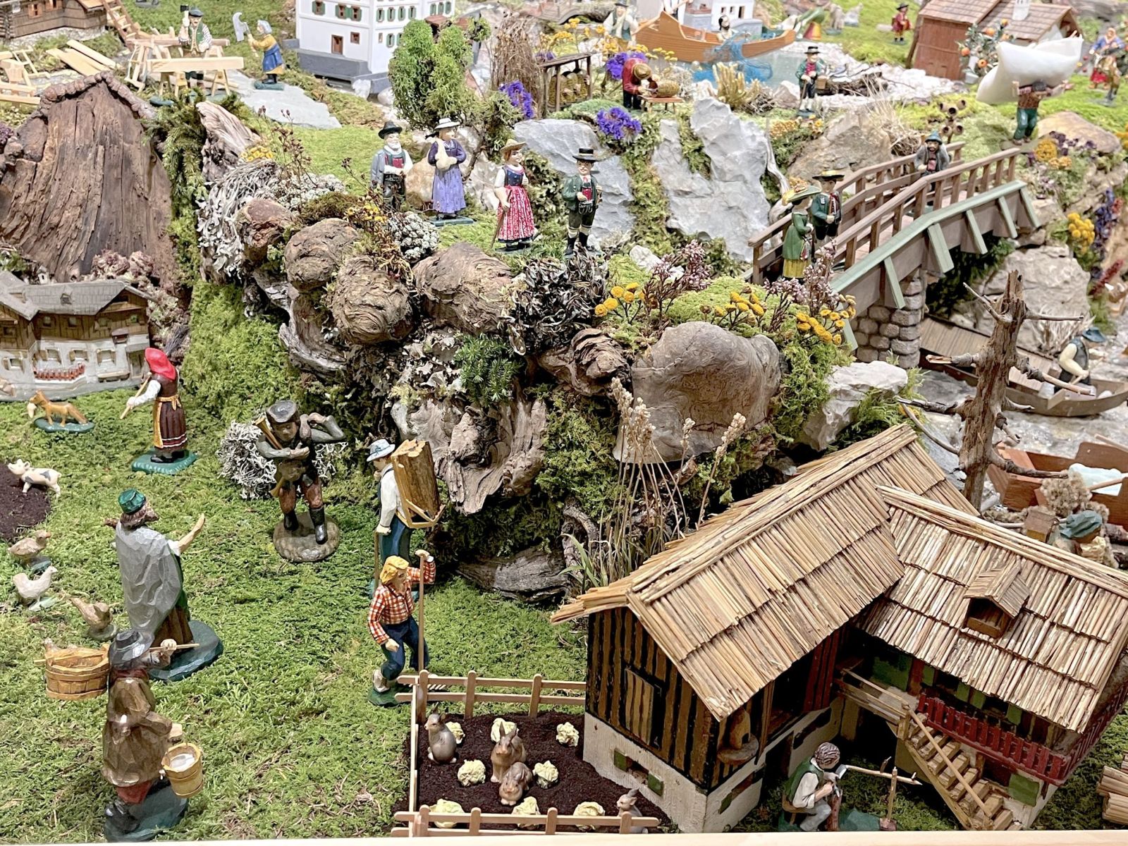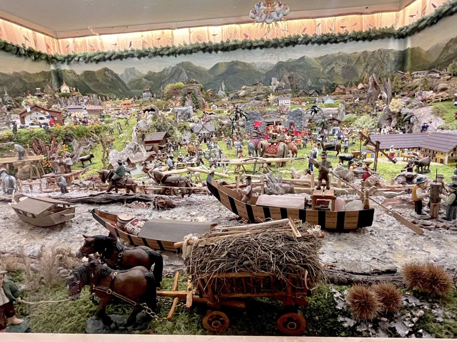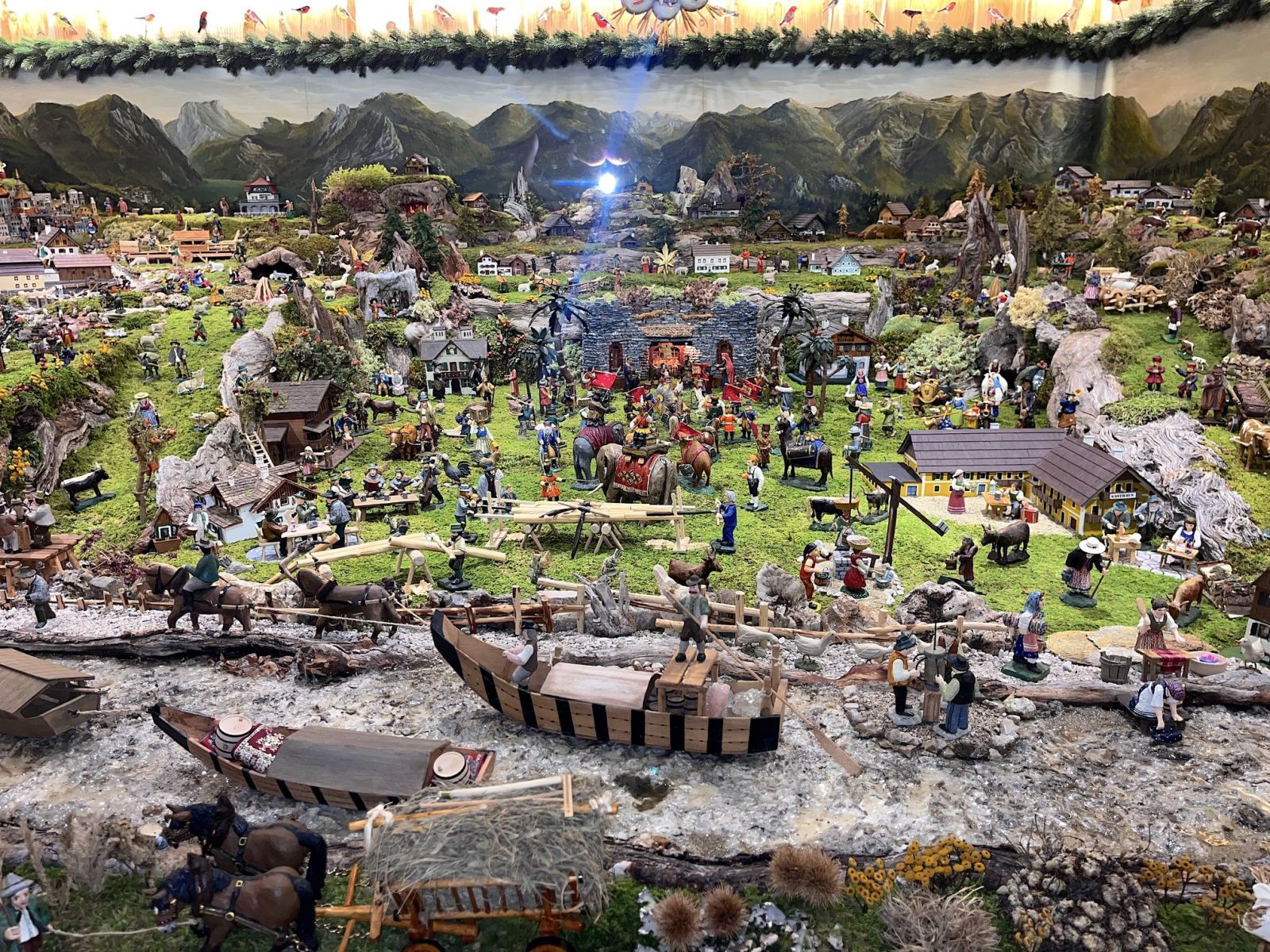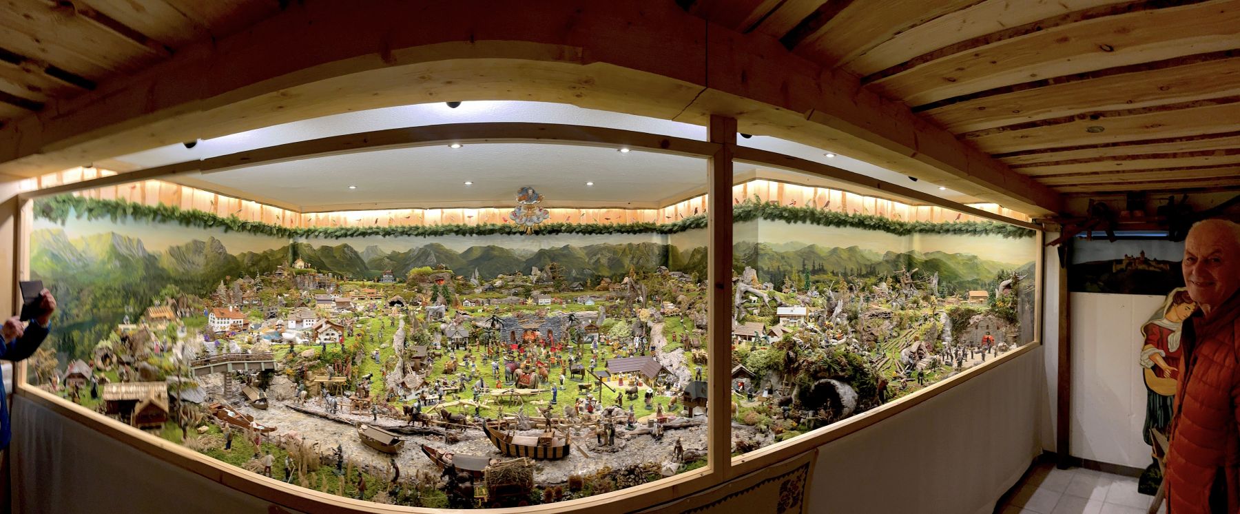 Noch war es möglich des Krippöschaun in Ebensee. Und das nützten wir am Montag 27.1.2025. Unsere acht köpfige Gruppe machte sich auf den Weg, der uns als erste Station zur Familie Franz Stüger vulgo Ka°librenner Krippe in der Heisslfeldsiedlung führte. Franz Stüger begrüßte uns recht herzlich und führte uns in Richtung seiner Krippe. Im Vorraum waren in liebevoll gestalteten Vitrinen Stationen rund um das Krippengeschehen aufgebaut und dann öffnete sich die Tür zur wohl größten Krippe des Salzkammergutes. Unbeschreiblich was da der Krippenvater in mühevoller Kleinarbeit in 3-4 Wochen geschaffen hat. Ca 900 Figuren und Tiere haben in der Krippe Platz gefunden. Auch viele Häuser und Hütten des Salinenortes fanden ihren Platz und wurden uns von Franz namentlich genannt. Die typischen Figuren einer Salzkammergut Krippe incl. der Salzschiffer auf der Traun, der Arbeiter im Salzbergwerk, der Salinenkapelle, Holzfäller, Vogelfänger und und sind in der Krippe zu finden! Man könnte stundenlang schauen und findet immer wieder Neues. Nach dem Eintrag im Krippenbuch und einem guten Krippöschnapserl ging die Kripperlroas weiter.