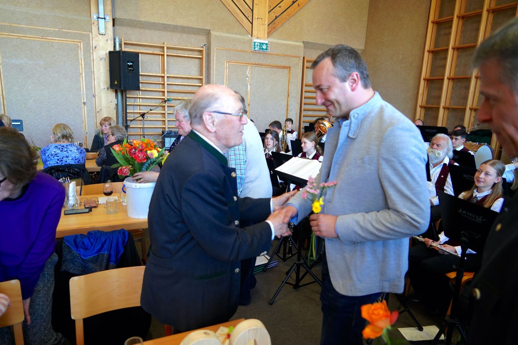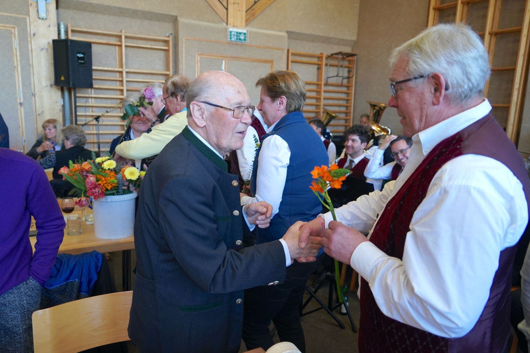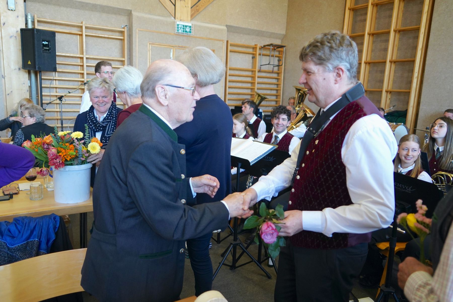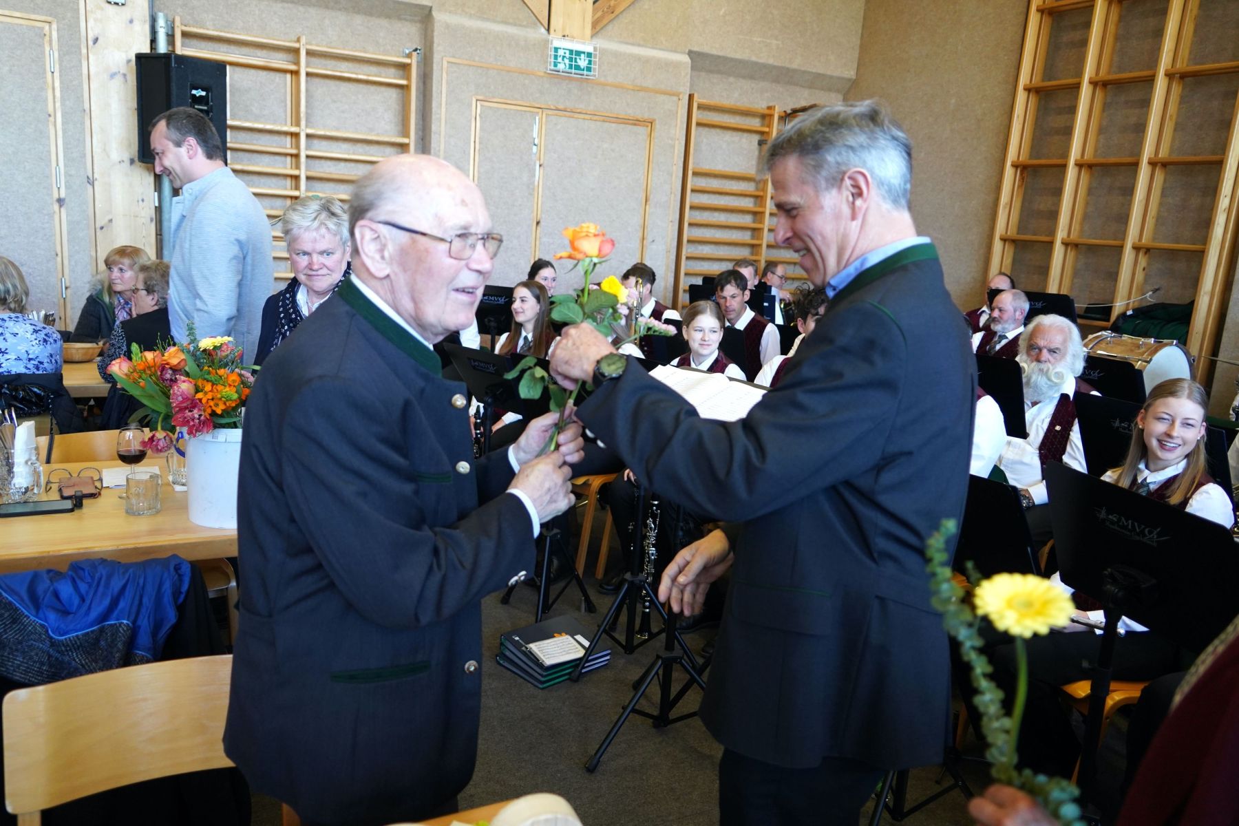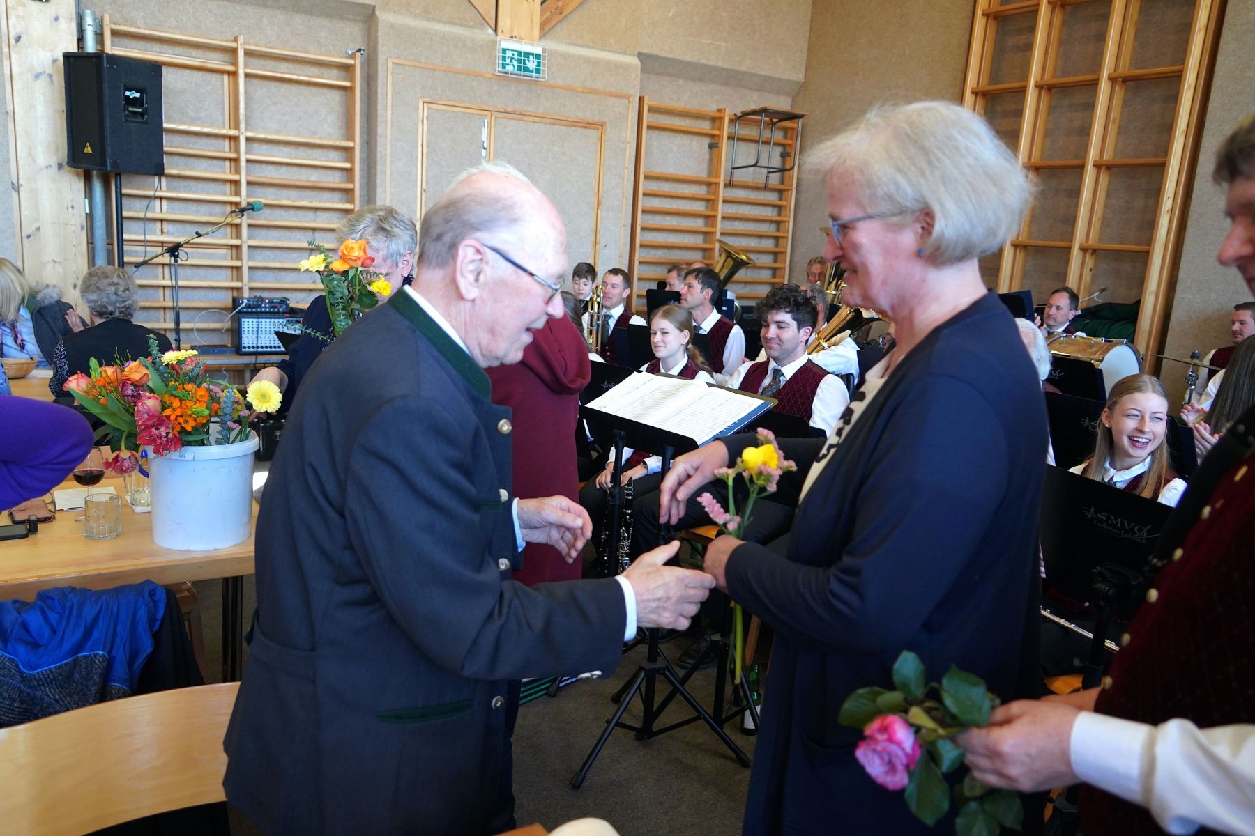 Nach dem Festakt folgte das gemeinsame Mittagessen und ein Frühschoppen des Musikvereines Gschwandt. Es war wahrlich ein Jubeltag der da in Gschwandt gefeiert wurde. Der in bester Gesundheit befindliche Alois Kainberger sagte: „Ich bin selbst überwältigt von den vielen Gästen, mit denen ich gemeinsam meinen 90iger feiern kann. Es ist wahrlich ein Geschenk des Herrgott`s, dass ich das so erleben kann. Meine Devise zur Gesundheit lautet: die beste Medizin aus der Apotheke kann die Bewegung, die ich immer noch zur Genüge machen kann, nicht ersetzen. Wer rastet der rostet. Und so kann ich meinen (Un)Ruhestand noch in vollen Zügen genießen. Das Beste, was wir auf Erden tun können, ist fröhlich sein, Gutes tun und die Spatzen pfeifen lassen!“ Ja und das mit einem verschmitzten Lächeln, wie alle von Alois Kainberger gewohnt sind!
