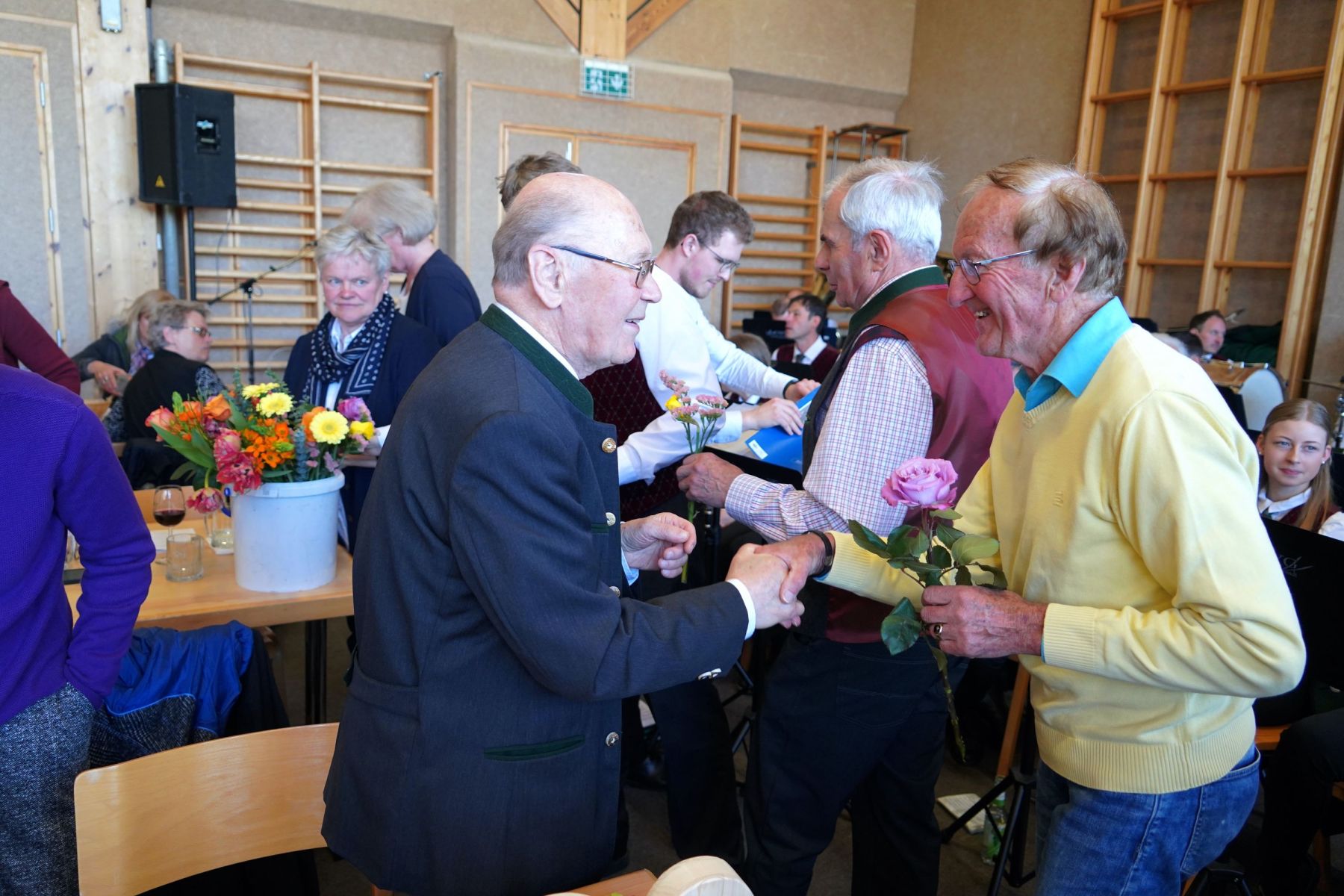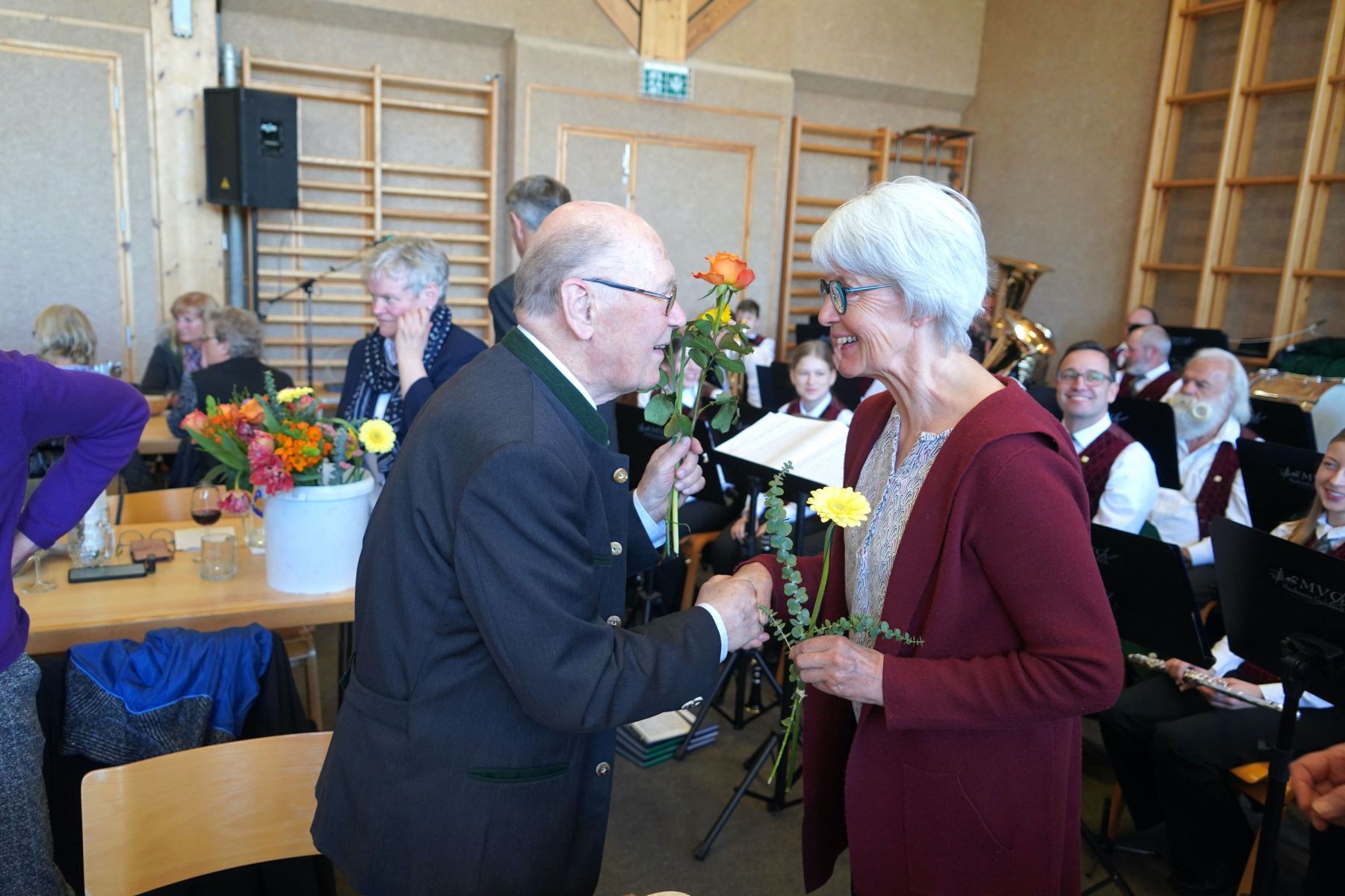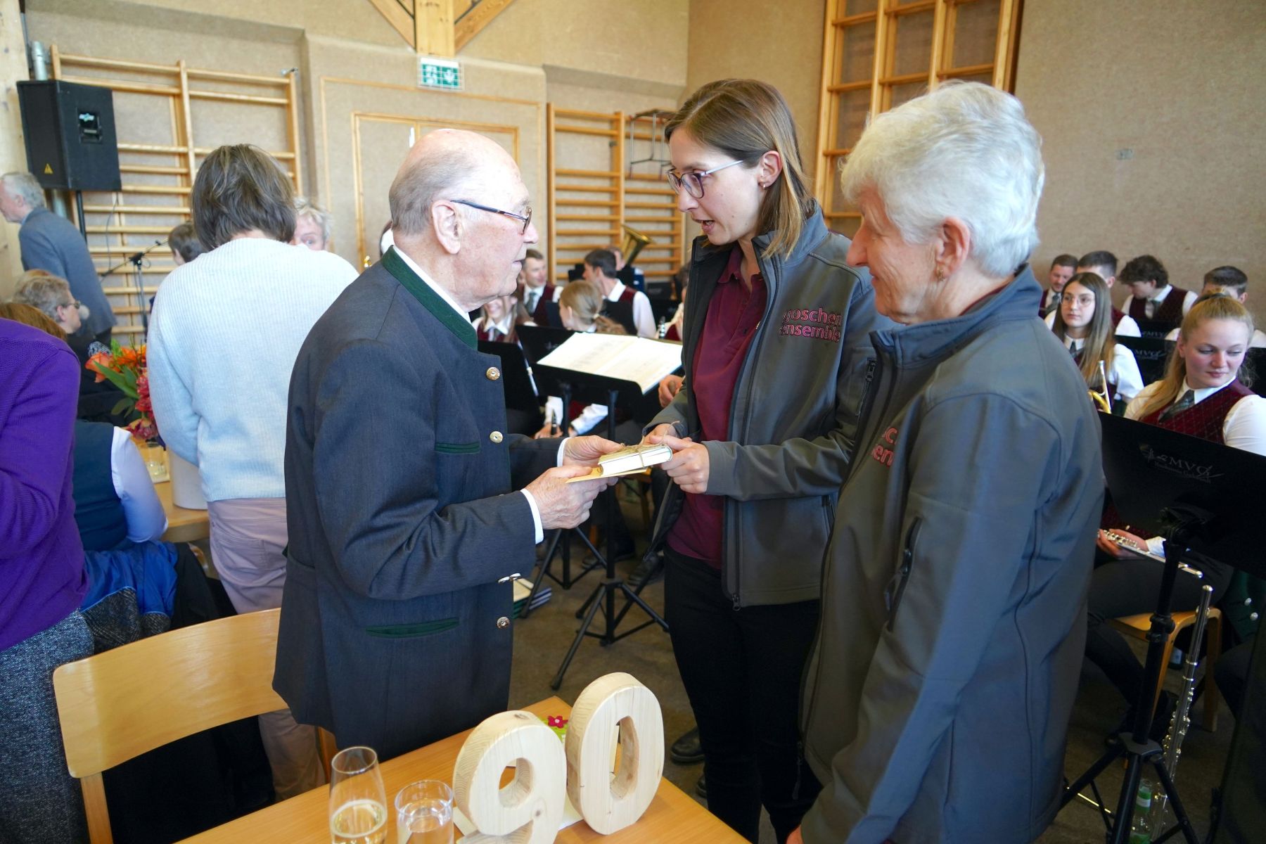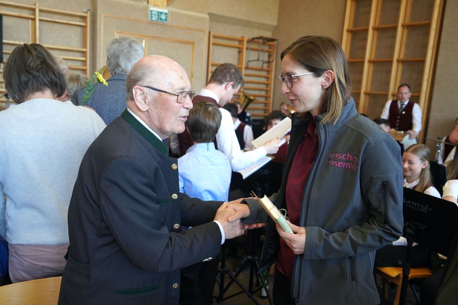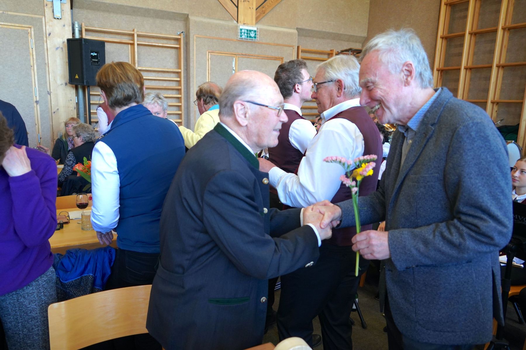 Nach dem Festakt folgte das gemeinsame Mittagessen und ein Frühschoppen des Musikvereines Gschwandt. Es war wahrlich ein Jubeltag der da in Gschwandt gefeiert wurde. Der in bester Gesundheit befindliche Alois Kainberger sagte: „Ich bin selbst überwältigt von den vielen Gästen, mit denen ich gemeinsam meinen 90iger feiern kann. Es ist wahrlich ein Geschenk des Herrgott`s, dass ich das so erleben kann. Meine Devise zur Gesundheit lautet: die beste Medizin aus der Apotheke kann die Bewegung, die ich immer noch zur Genüge machen kann, nicht ersetzen. Wer rastet der rostet. Und so kann ich meinen (Un)Ruhestand noch in vollen Zügen genießen. Das Beste, was wir auf Erden tun können, ist fröhlich sein, Gutes tun und die Spatzen pfeifen lassen!“ Ja und das mit einem verschmitzten Lächeln, wie alle von Alois Kainberger gewohnt sind!