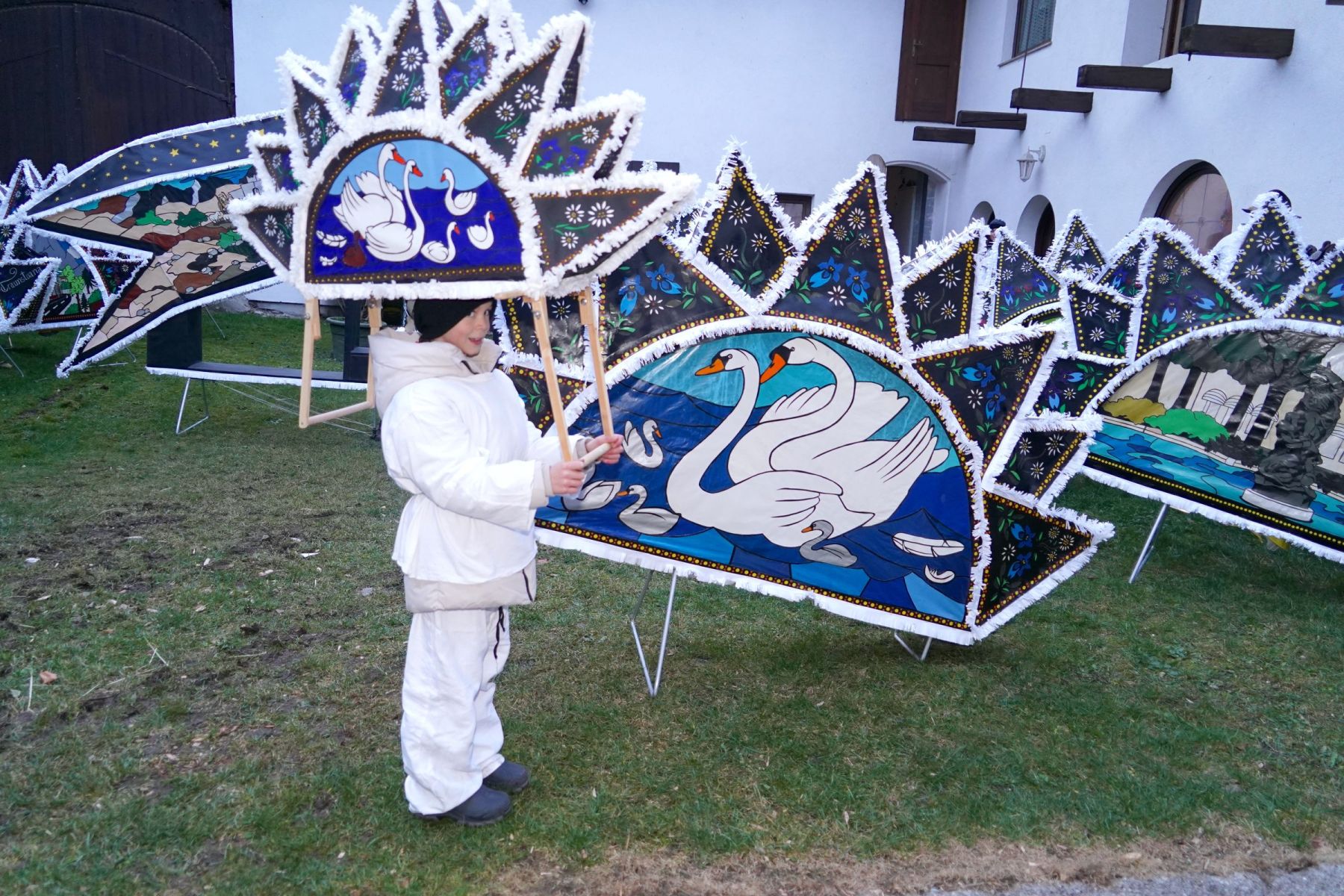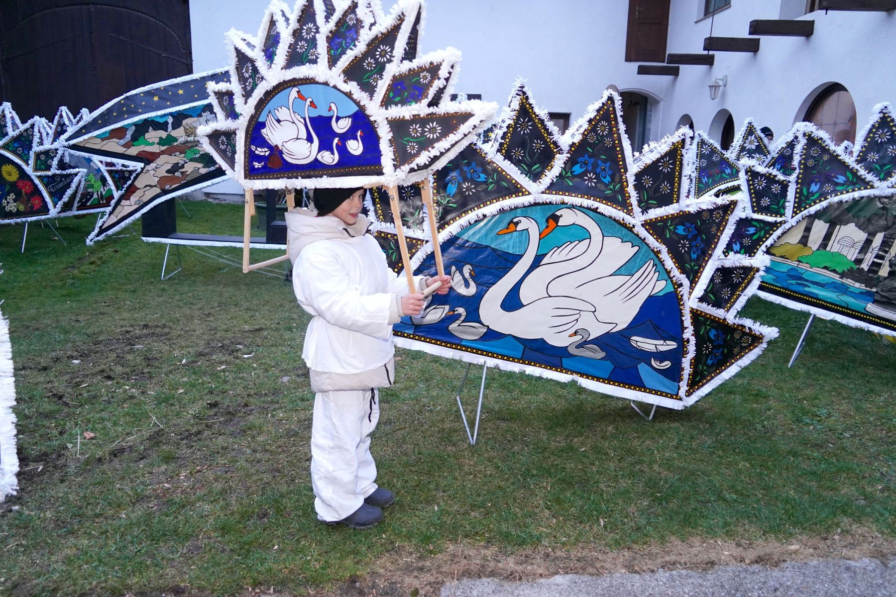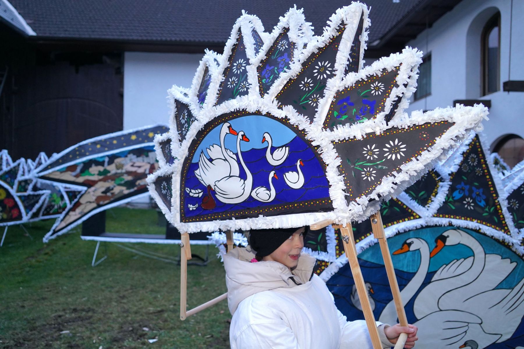 Weiter ging es der Esplanade entlang zum Esplanadencafe, zur Fam. Löberbauer, in den Einkaufspark SEP, wo die Traunstoana durch Sen. Chef Franz Moser persönlich empfangen wurden, dann zur Fam. Föttinger Fischill-Gut, Fam. Dickinger mit Nachbarn, wo auch die Kerzen in den Glöcklerkappen entzündet wurden und der Lauf zu Fam. Harringer „Seeholz“, einen der Höhepunkte des Tages, fortgesetzt wurde. Die weltbekannte „Glöcklersuppe“ hat wieder allen Teilnehmern hervorragend geschmeckt und gab genug Kraft für den weiten Weg in Richtung Rathausplatz Gmunden, wo der Glöcklerlauf in einem Riesen Spektakel mit ca 350 teilnehmenden Glöcklern endete. Eine schier unüberschaubare Menschenmenge empfang die Kappenträger mit tosendem Applaus. Nach einigen Runden am Rathausplatz sangen alle Teilnehmer gemeinsam die Glöcklerlieder „oh Wuna über Wuna“ und „es wird scho gleich dumpa“. Beim Auszug aus dem Rathausplatz verteilten Bgm Stefan Krapf und sein Vize Wolfgang Schlair die obligatorischen Glöcklerkrapfen an alle Kappenträger. Die Traunstoanapass blieb noch am Rathausplatz und alle interessierten Zuseher konnten einen Blick in und auf die kunstvollen Kappen werfen. Natürlich wurden auch viele Fragen zur Herstellung der Kappen und dem Glöcklerbrauch zufriedenstellend beantwortet.
