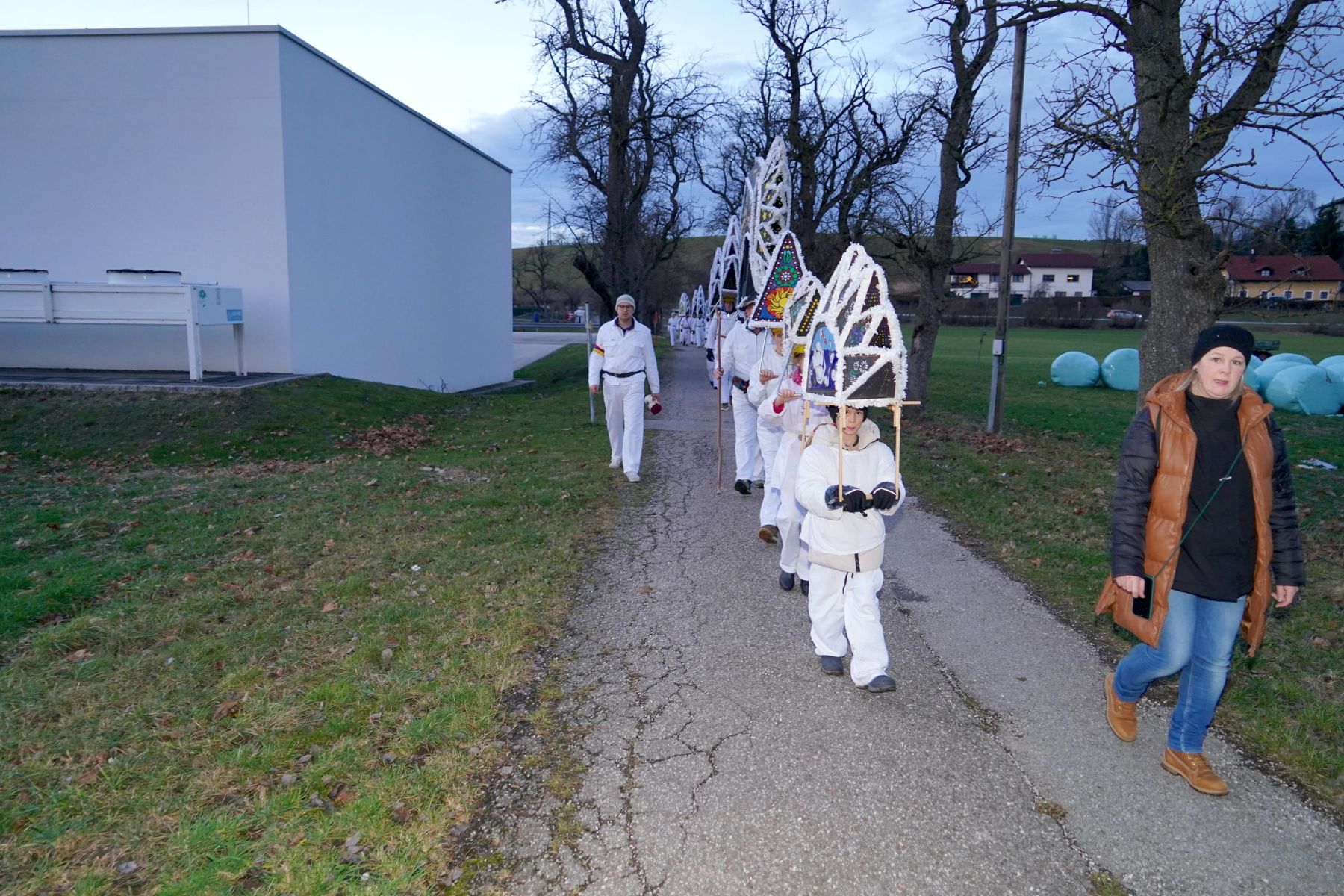 Nach dem Zittern am Vortag mit starkem WInd und Regen wurde der Glöcklerlauf am 5.1.2024 zum Traumtag für alle Glöckler und speziell für die Glöcklerpass TRAUNSTOANA in Gmunden. Bereits um 9:00 Uhr Vormittag trafen sich alle Mitglieder im Heimatquartier beim Bauchtbauern. Wie immer ein herzlicher Empfang von Christa und Roman Gaigg in der gemütlichen Stube des Bauernhauses war der Beginn des Glöcklertages 2024. Um 10 Uhr wurde nach den Glöcklerliedern der Lauf in Richtung Gmunden Stadt begonnen. Erste Station war auf Einladung bei Dominik Gessert in der Arbeiterkammer und ÖGB Gmunden. Nach einem Umtrunk ging es weiter auf den Rathausplatz ins Seehotel Schwan zu Fam. Nöstlinger, in’s Rathaus auf Einladung von Bgm. Mag. Stefan Krapf und erstmals auch in’s Rathauscafe zu Lulzim Fejzullahi. Der herzliche Empfang bestätigte, dass der Brauch des Glöckelns überall willkommen ist!