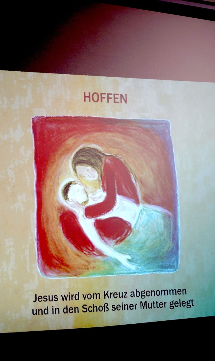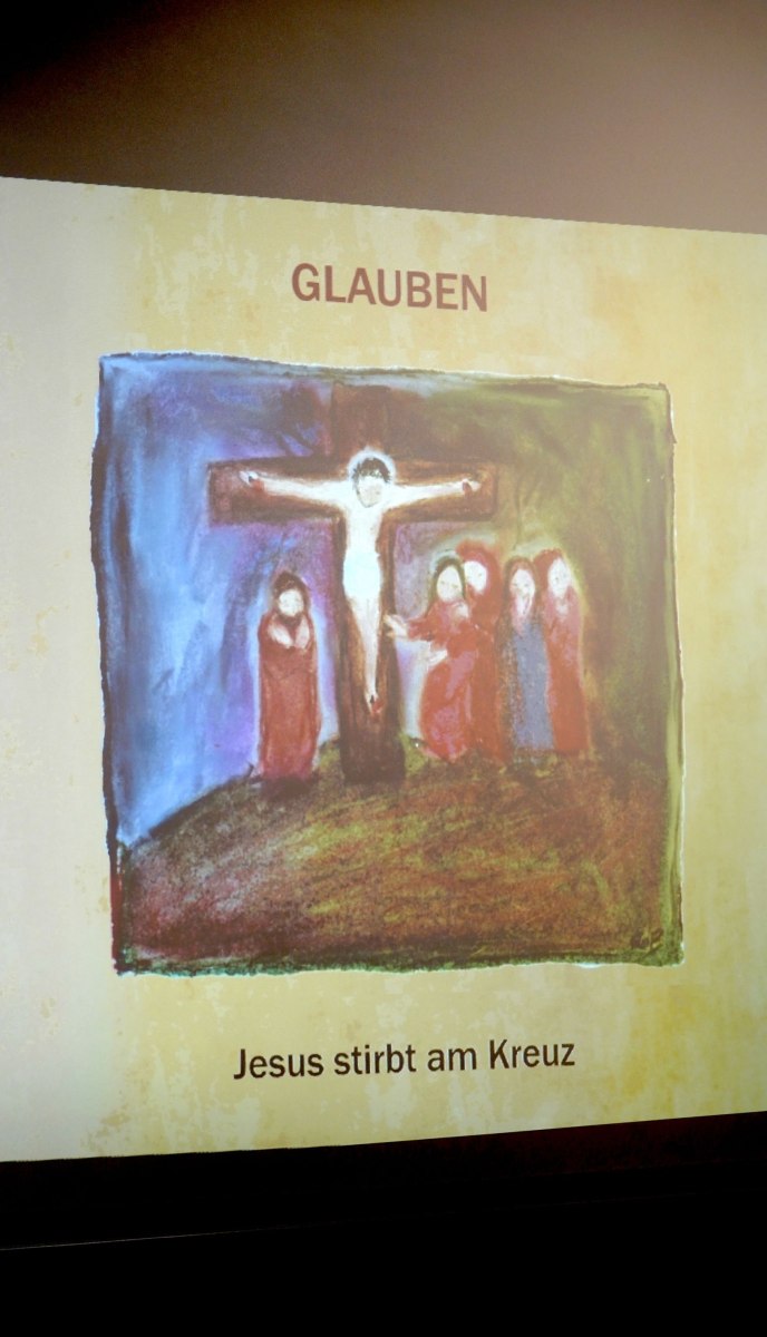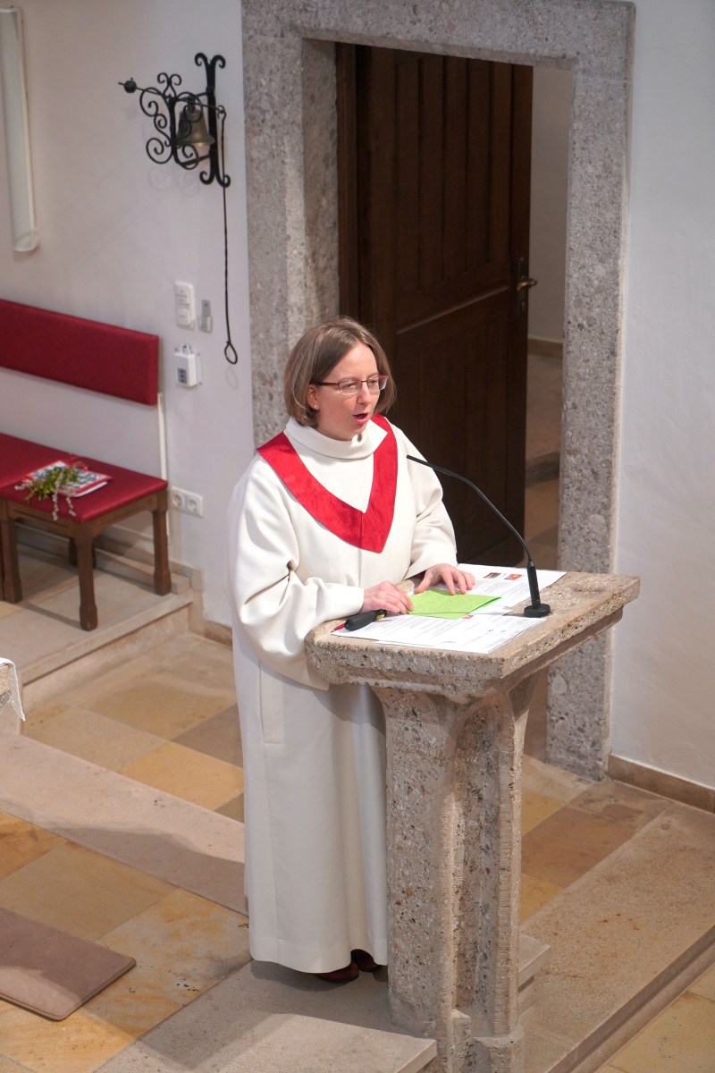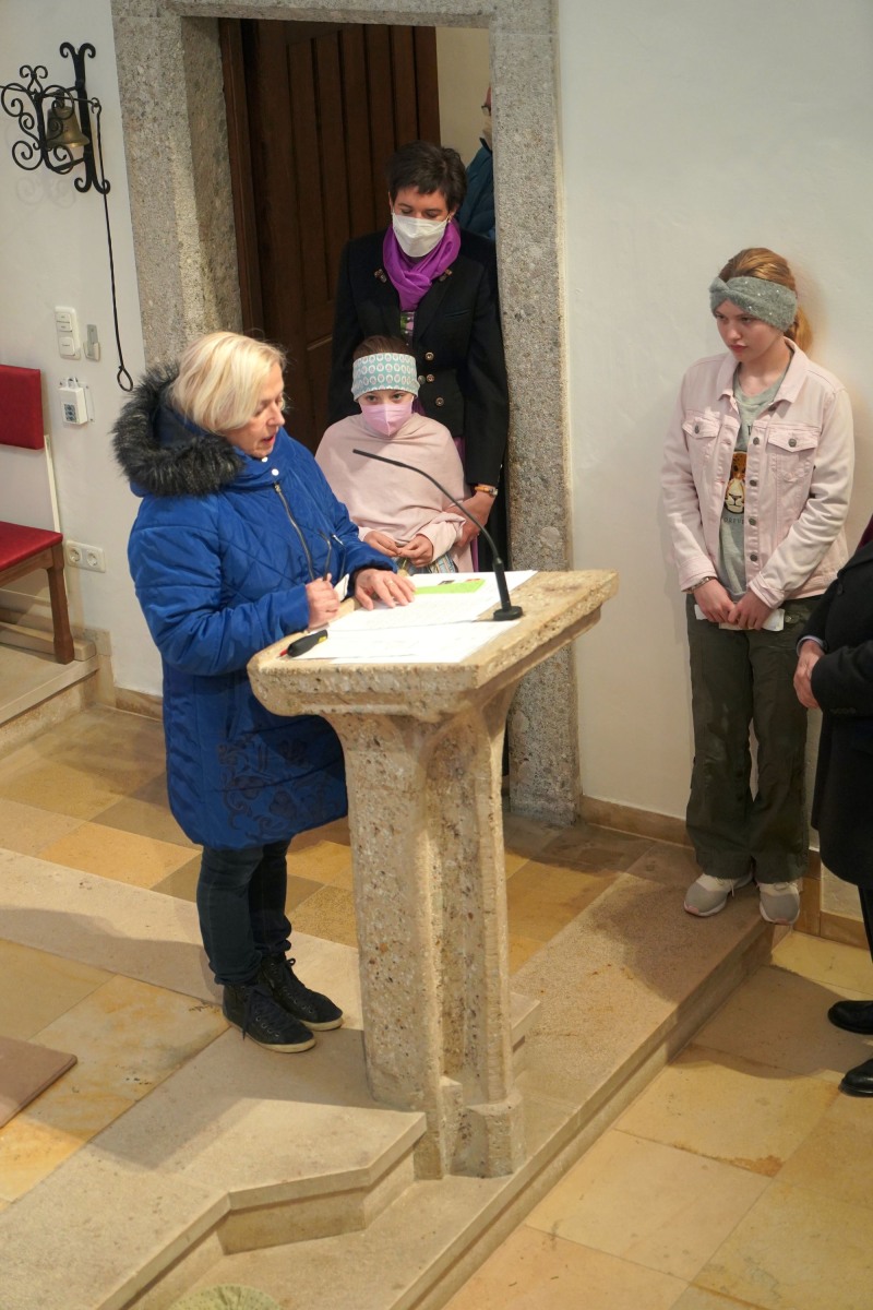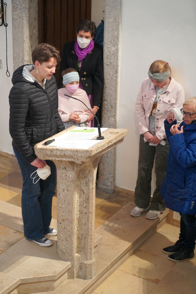 Der Wettergott hatte auch Einsehen und unterbrach das Aprilwetter für die Feierstunde im Freien ohne Regen, Schnee und Graupelschauer. Bei der Gestaltung der Messe im Inneren der Pfarrkirche wurden auch die Kinder und Jugendlichen einbezogen und auch der Leidensweg Jesus mit Bildbegleitung war etwas ganz besonderes. Einzig wohl auch das gesungene „Vater unser“ unter musikalischer Unterstützung der Musikkapelle Gschwandt. Am Ende des Gottesdienstes versammelten sich alle Kids und Jugendlichen mit Pfarrassistentin Anna Maria MARSCHNER und Pfarrer Alois KAINBERGER um den Altar zu einem Erinnerungsbild.