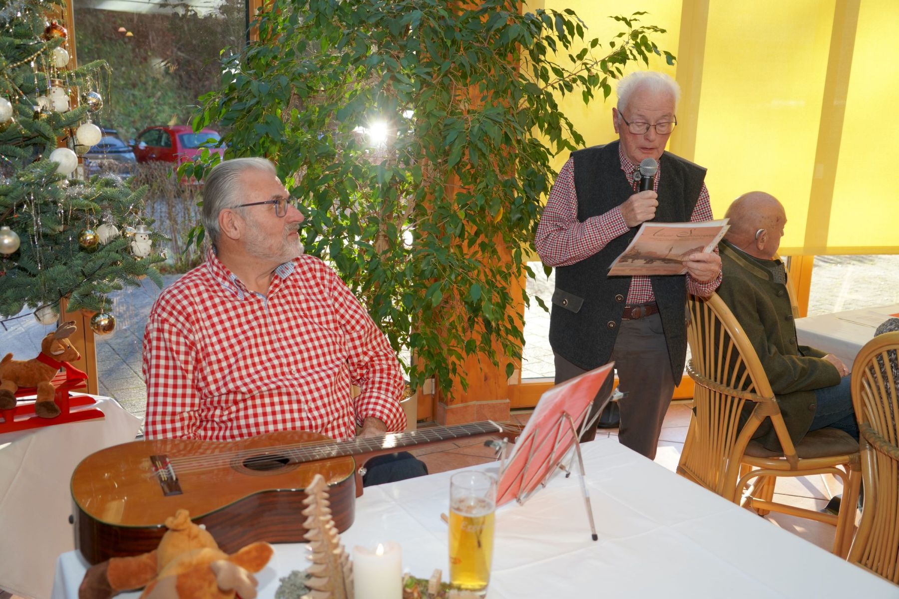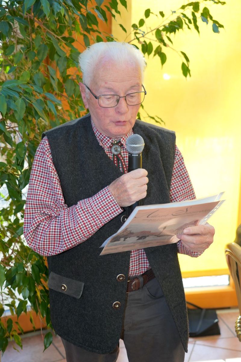 Nach dem gemeinsamen Mittagessen griff dann Walter Rennhofer zur Gitarre und alle sangen gemeinsam schöne Weihnachtslieder. Zwischendurch erzählten in bewährter Weise Erna Binder, Herbert Roithner und auch Walter Rennhofer besinnliche und heitere Weihnachtsgeschichten. Als Abschluss des offiziellen Teiles erklang dann noch unter Gitaarrenbegleitung das Lied „Stille Nacht, heilige Nacht“. Natürlich wurde anschließend noch weiter gefeiert und mit dem „Geburtstagskind“ Maria Aigner mit ein paar Glaserl angestossen. Ein schöner Abschluss eines erfolgreichen Vereinsjahres, dem noch viele folgen sollen!