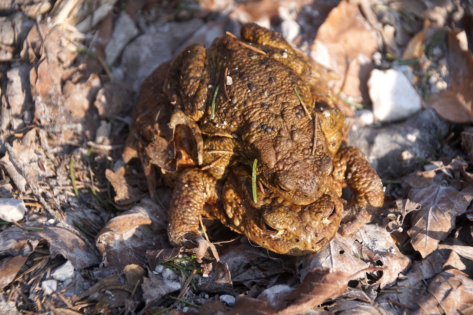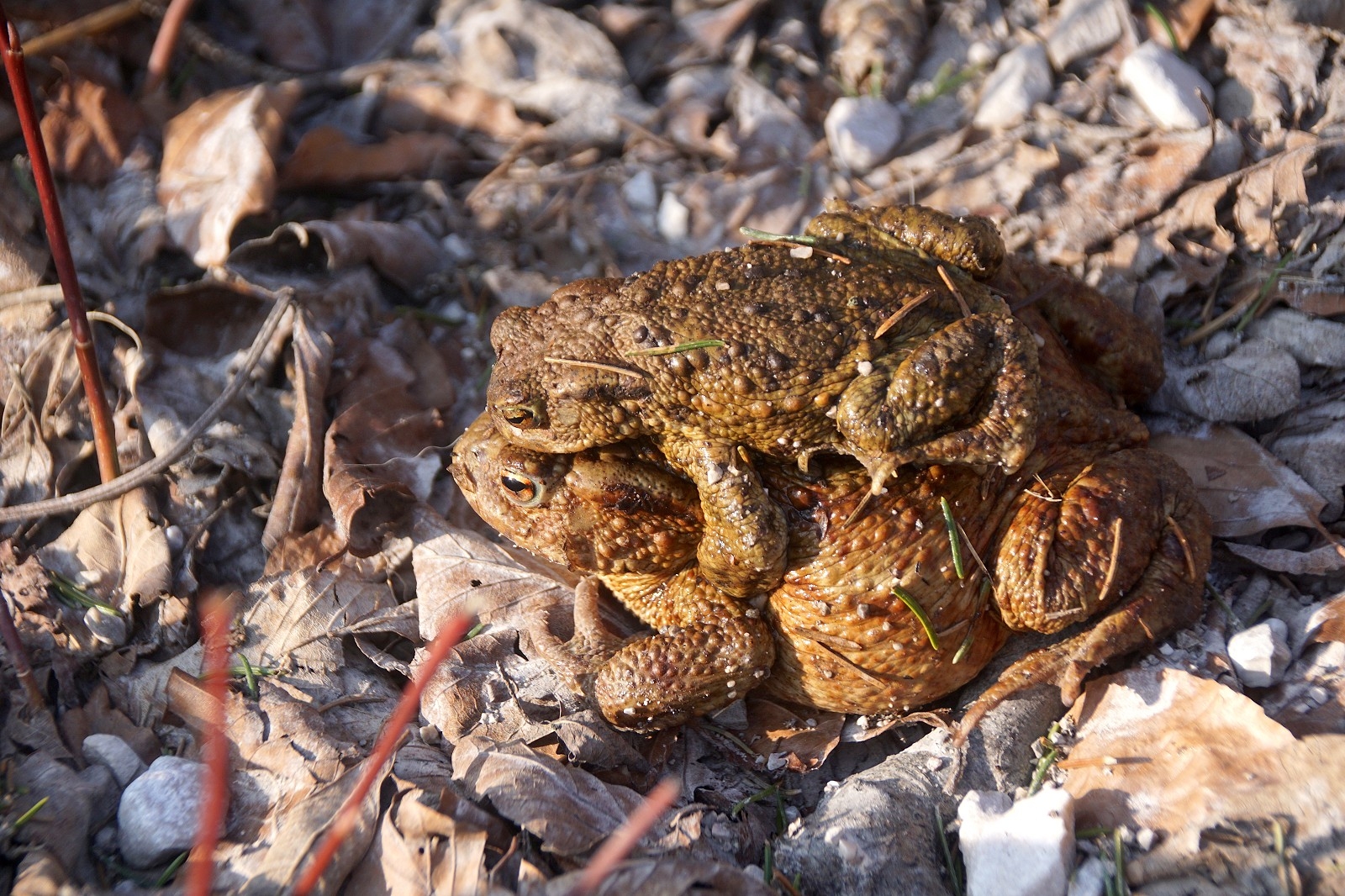 Aber auch die Amphibien wie Kröten und Frösche zieht es vom Wald in Richtung Wasser. Oft müssen sie da auch den Weg überqueren und sich durch Radfahrer auch in Gefahr begeben. Speziell bei den Kröten, wo die Männchen ja von den Weibchen huckepack getragen werden, ist dies ein kräfteraubendes Unterfangen. Am hinteren Ende des Offensee war auch die Badewiese schon kräftig belegt und zwei Schitourengeher nutzten das kühle Nass als Abkühlung (Foto war nicht erwünscht). In Richtung Parkplatz konnte man einen „weinenden Baumstamm“ sehen, dessen austretendes Harz in der Sonne wie Edelsteine glitzerten. Wir können wirklich dankbar sein, ein derart schönes Naturjuwel in unserer Nähe zu haben!