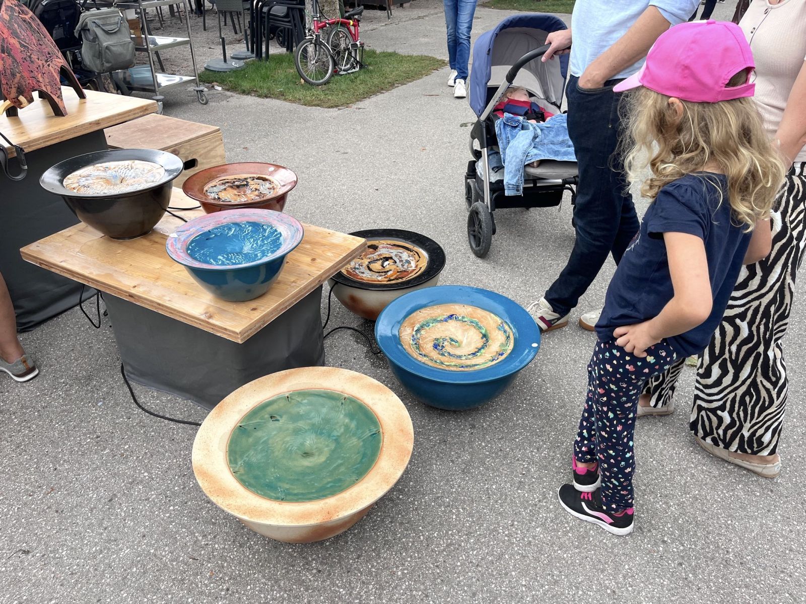 Unterschiedlichste Techniken, Dekors und Stilrichtungen dieses Handwerks haben das Publikum aufs Neue begeistern. Auch heuer haben sich wieder neue Werkstätten vorgestellt und dies freute die Marktverantworliche Eva Fürtbauer ganz besonders. Der Töpfermarkt ist nicht nur eine gute Gelegenheit für Besucher und Liebhaber der Keramikkunst einen guten Überblick über die europäische Keramik-Szene zu bekommen – es ist auch bestimmt für jeden Geschmack etwas dabei! Dies konnte man auch bei den Besuchern mit vielen Einkaufssackerl erkennen. Besonders beliebt war auch die „Zaubertöpferscheibe“ von Thomas Benirschke, auf der die Kids eigene Töpferkunstwerke herstellen durften.