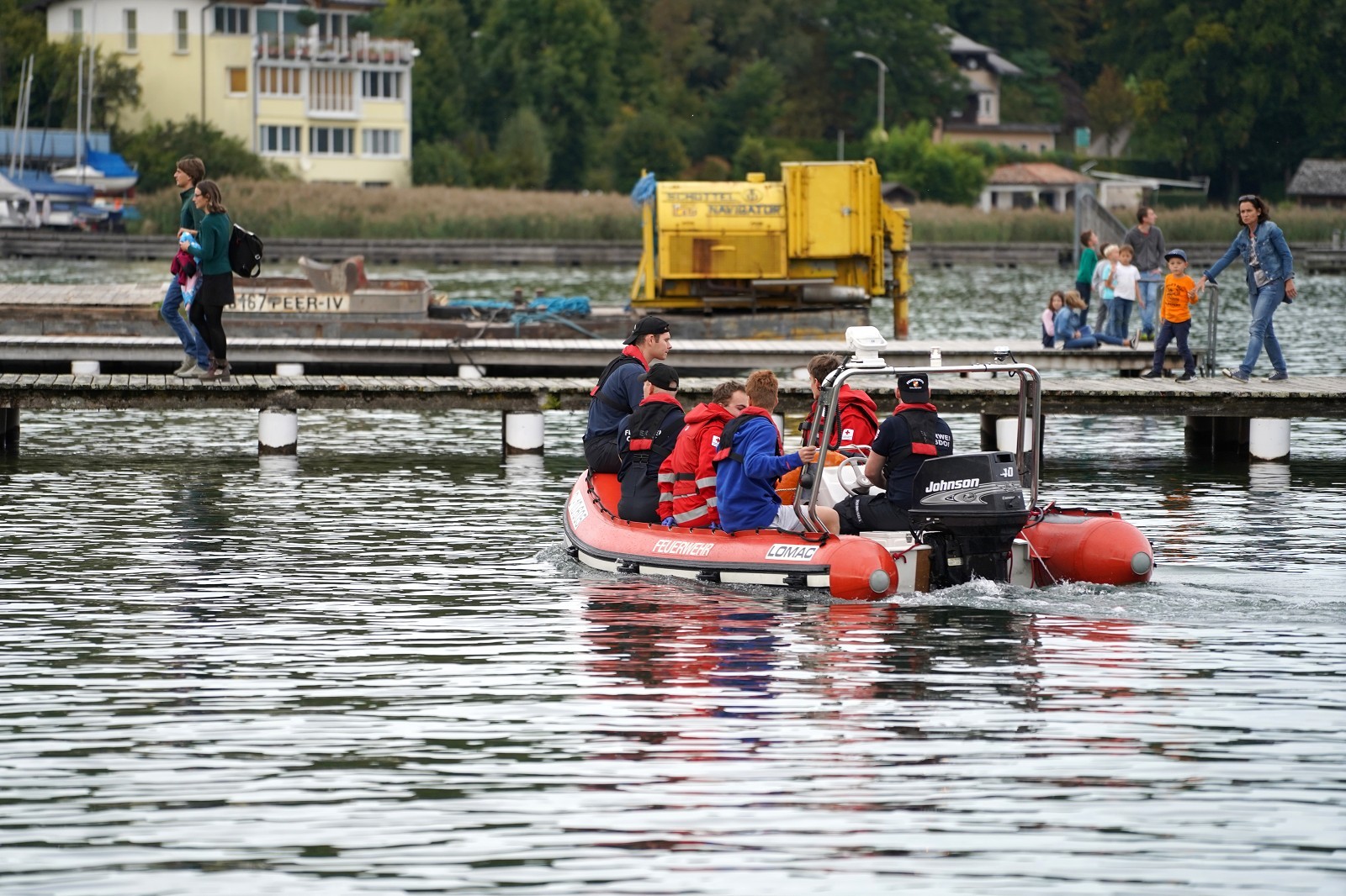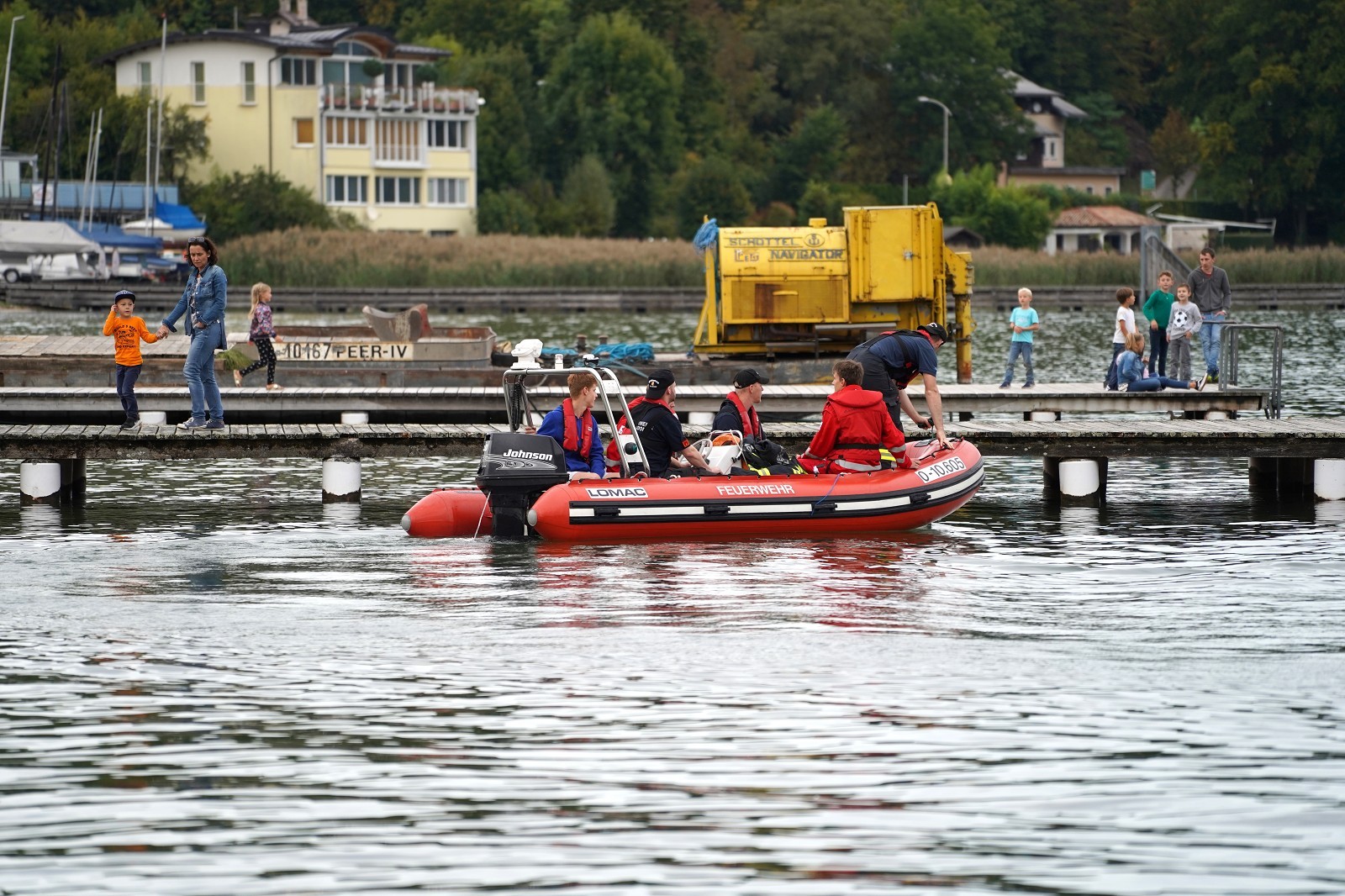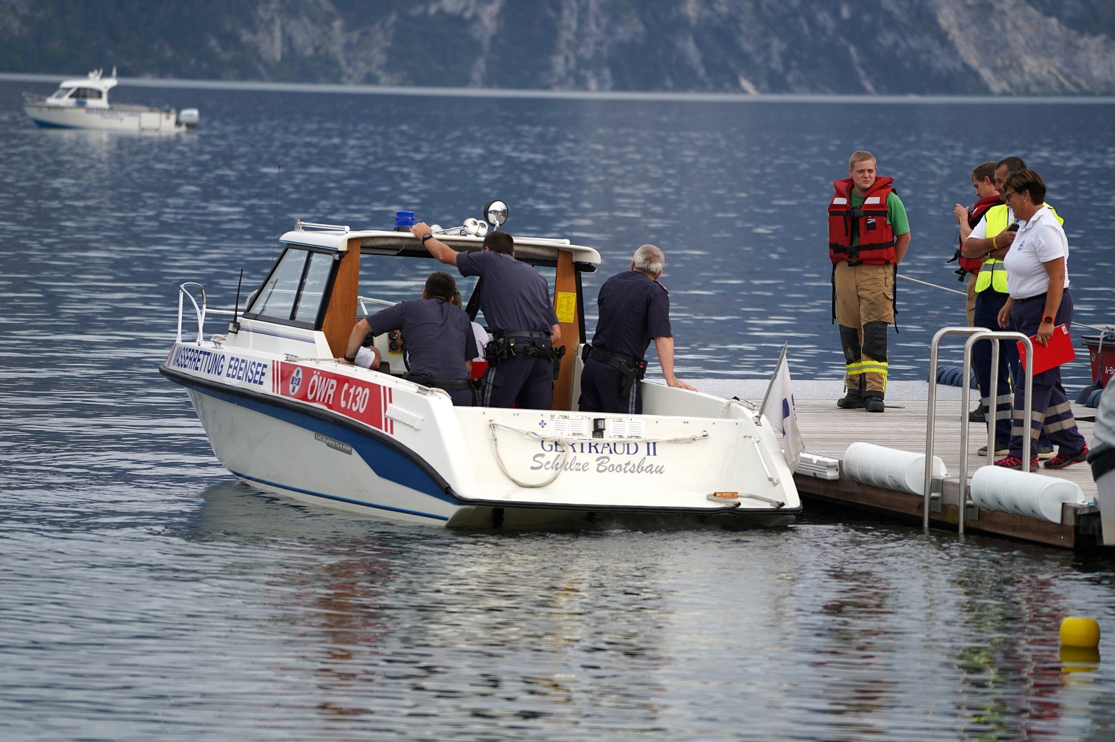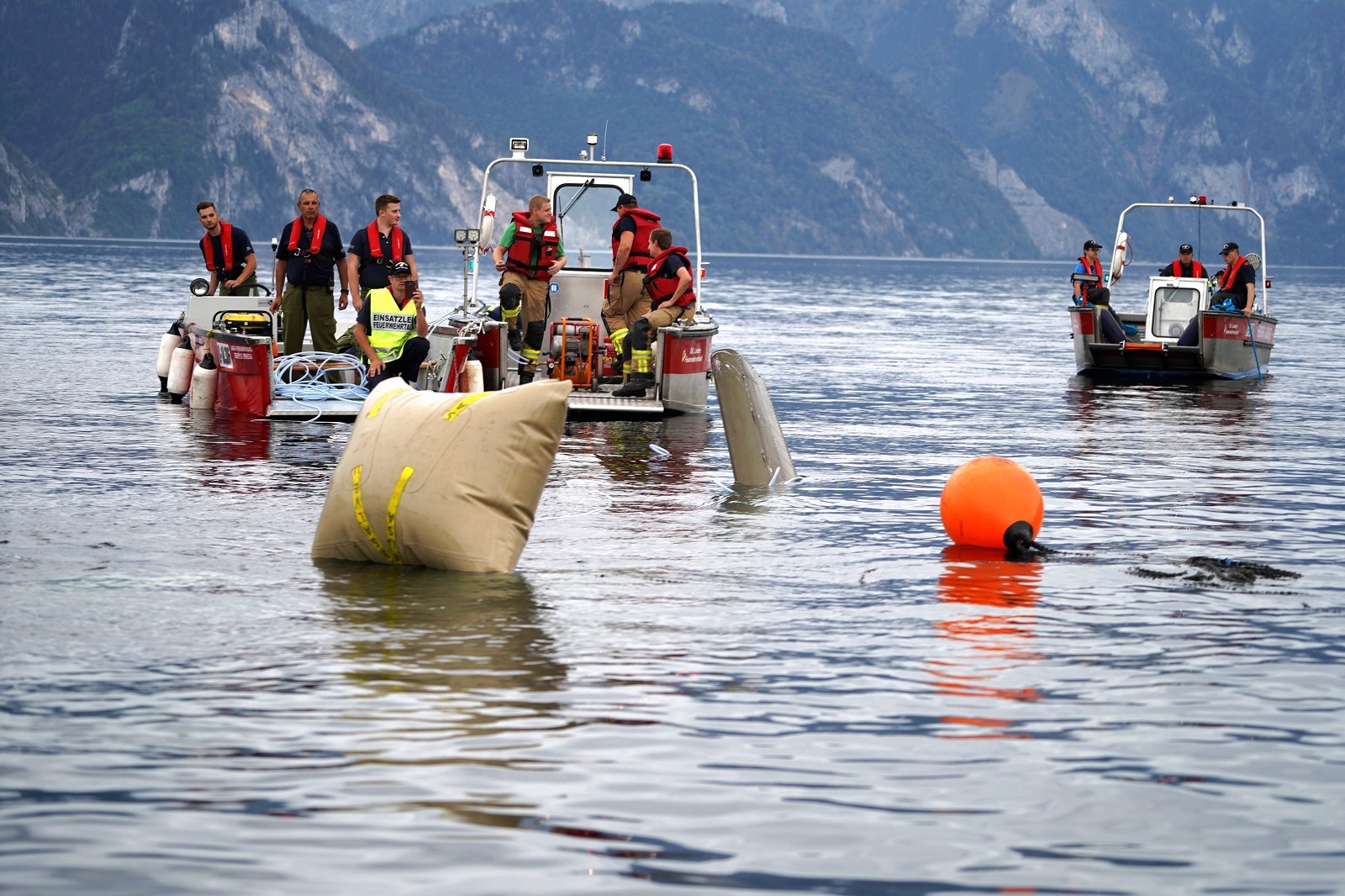 Nach wochenlanger, intensiver Planung durch die Feuerwehr Altmünster konnte heute diese Großübung in Angriff genommen werden. Schauplatz war die Seepromenade in Altmünster. Um ca 16 Uhr startete die FF Altmünster mit einem A-Boot und markierte nach Ortung die Unfallstelle mit einer Boje. Nach und nach trafen die Einsatzboote des Bezirkes an der Unfallstelle ein und wurden eingeteilt. Feuerwehrtaucher des Stützpunktes Traunkirchen machten den ersten Erkundungstauchgang und befreiten nach kurzer Zeit einen Insassen aus dem Hubschrauberwrack, der auch gleich an Land gebracht und dem Roten Kreuz übergeben wurde. Die Bergung der Maschine erwies sich als äußerst schwierig. Weitere Taucher wurden hinzugezogen, die dann an das Fluggerät Hebeballons anbrachten und so den Hubschrauber gleichmäßig an die Oberfläche beförderten.In der Zwischenzeit konnten auch die beiden vermissten Personen aus dem Ruderboot am Ufer ausgemacht und geborgen werden. Auch sie wurden dem roten Kreuz zur weiteren Betreuung übergeben.