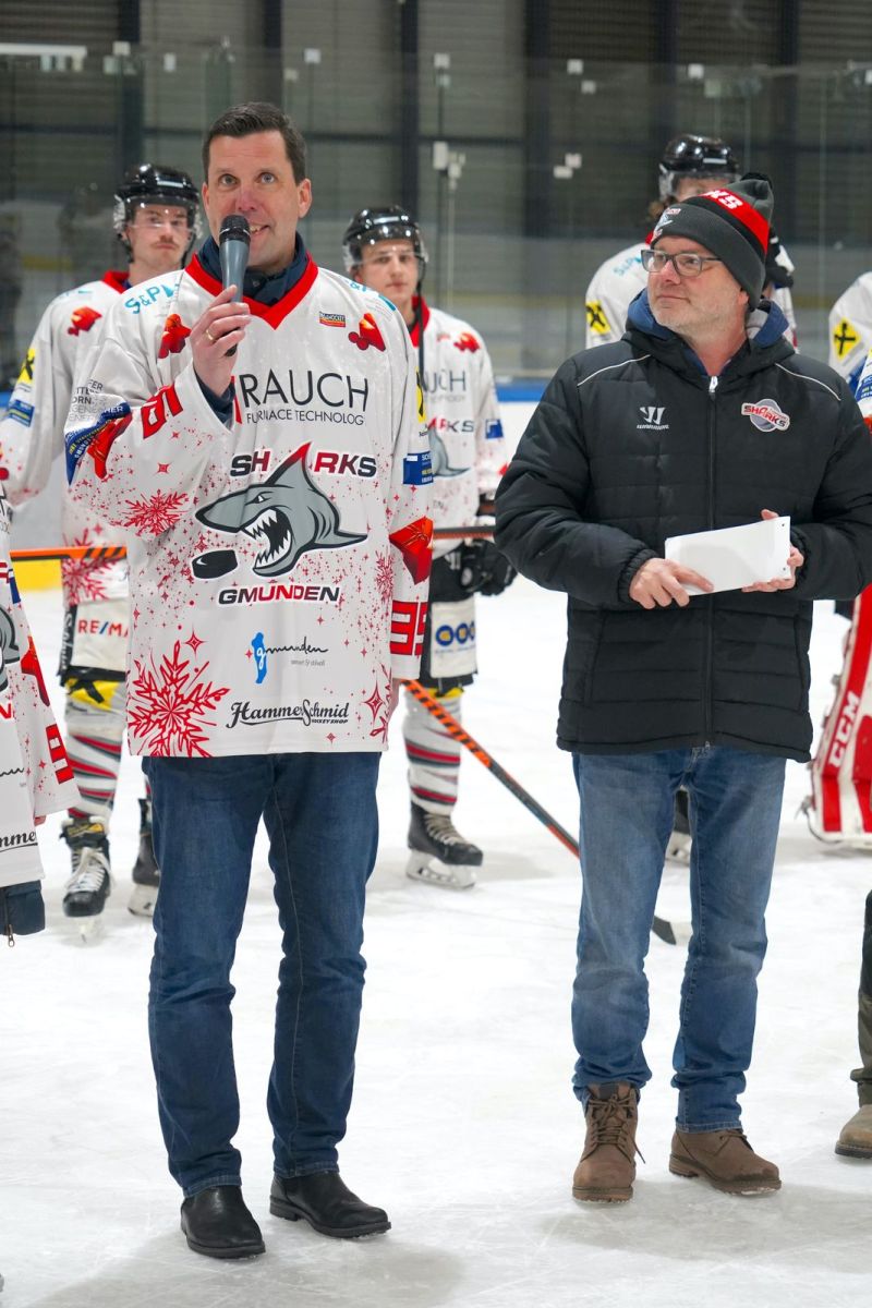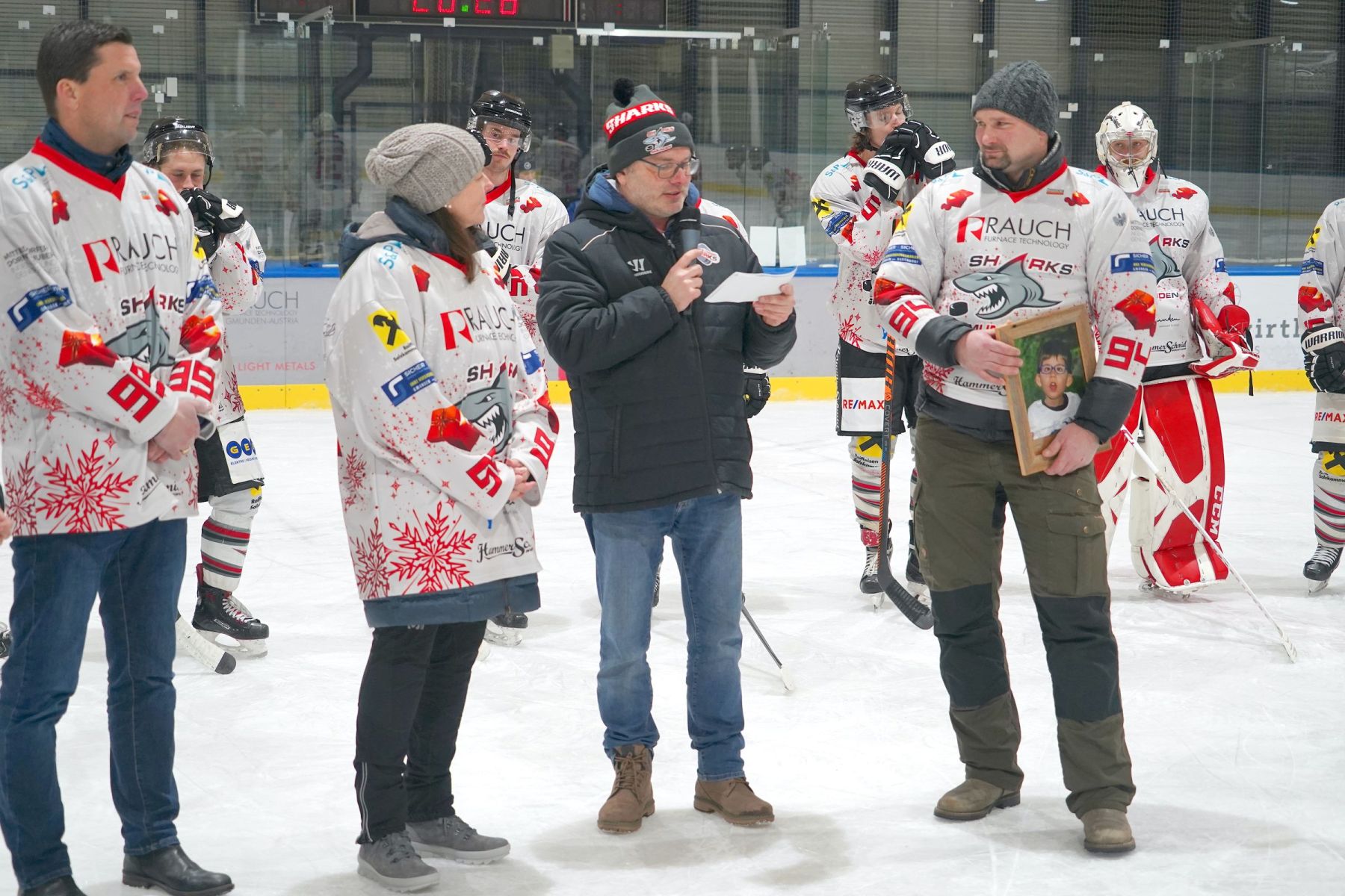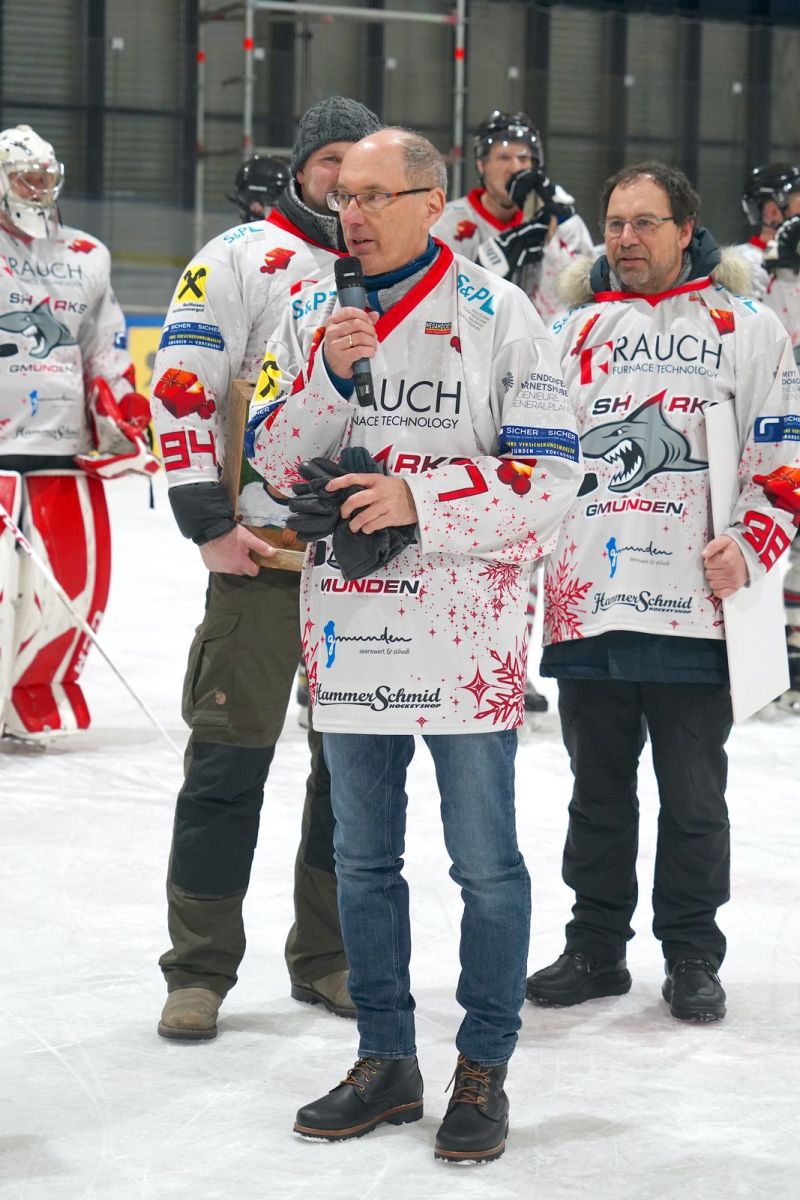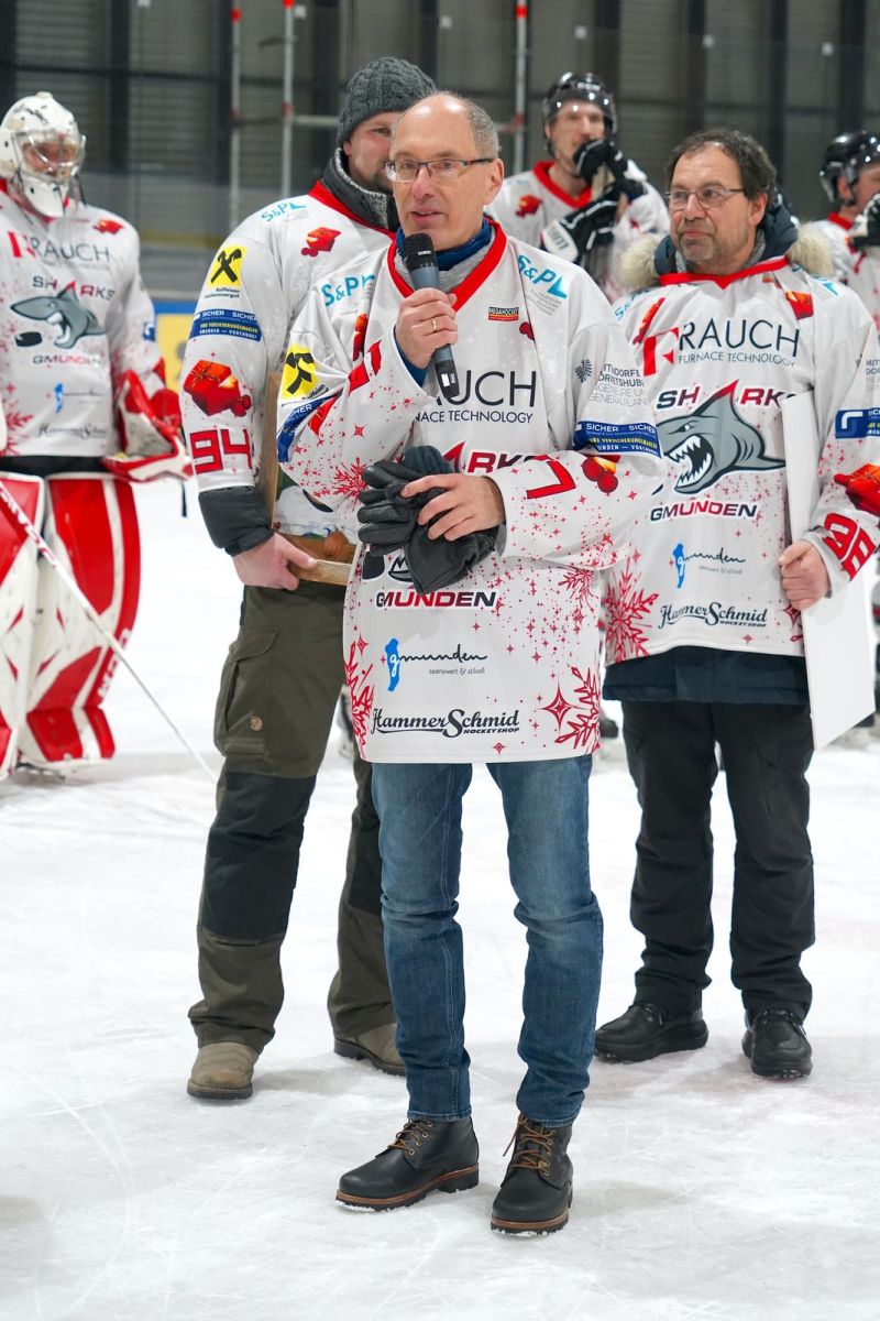 Am Samstag 21.1.2023 fand wieder nach coronabedingter, zweijähriger Pause ein Benefiz Eishockeyspiel der RAUCH TECHNOLOGY SHARKS Gmunden gegen UHT DUKES Graz statt. Die Einnahmen dieses Sport,- und Benefizabends kamen dem BezirksRundSchau Christkind Samuel aus Kirchham zugute. Hauptsponsor des Benefizspieles war die Stern Holding Gmunden. Organisator dieser Veranstaltung war Shark Urgestein Michael SCHALK, der sehr viel Herzblut in dieses Mega Event gesteckt hat. Natürlich hat die gesamte SHARKFAMILIE für den Riesen Erfolg mitgearbeitet.