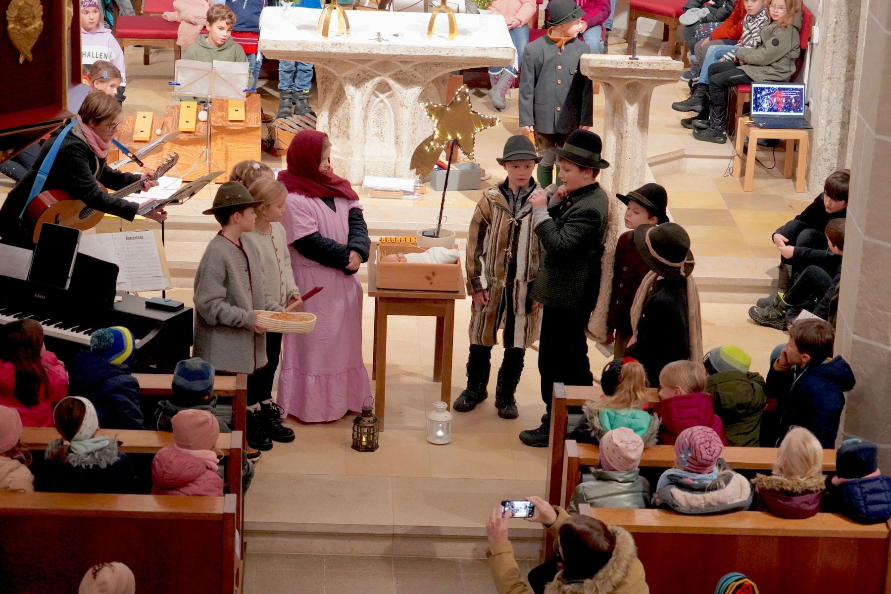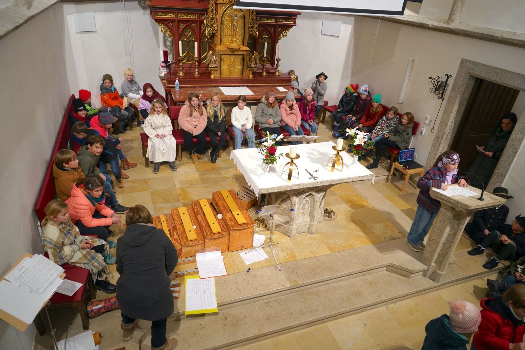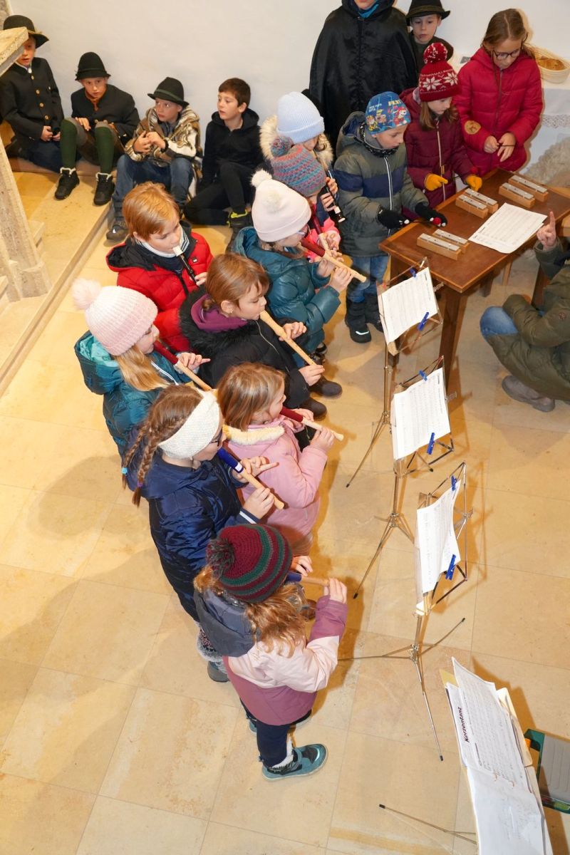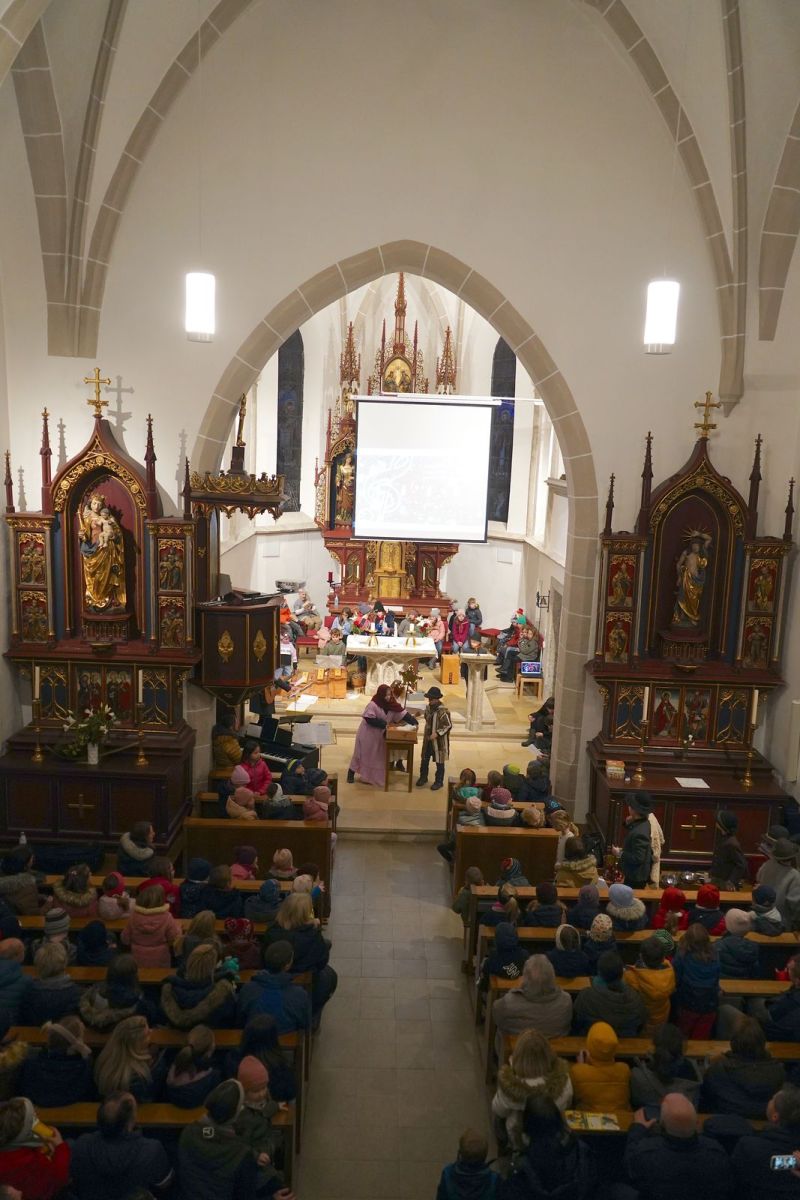 Am Vorplatz der Volksschule gab es die verschiedensten Schmankerl und Köstlichkeiten für jeden Geschmack, die von den Vereinen des Ortes vorbereitet waren. In der Kekserlbackstube für Kids wurde fleißig Teig gerollt und gebacken, in der Bücherei gab es Vorlesungen und ein Höhepunkt war um 16:00 Uhr ein Adventsingen mit Hirtenspiel der Musikvolksschule in der gegenüber liegenden Pfarrkirche, die bis auf den letzten Platz belegt war. Der Riesen Applaus belohnte die vielen Kinder der Schule mit ihren Lehrerrinnen für diesen perfekten Auftritt.