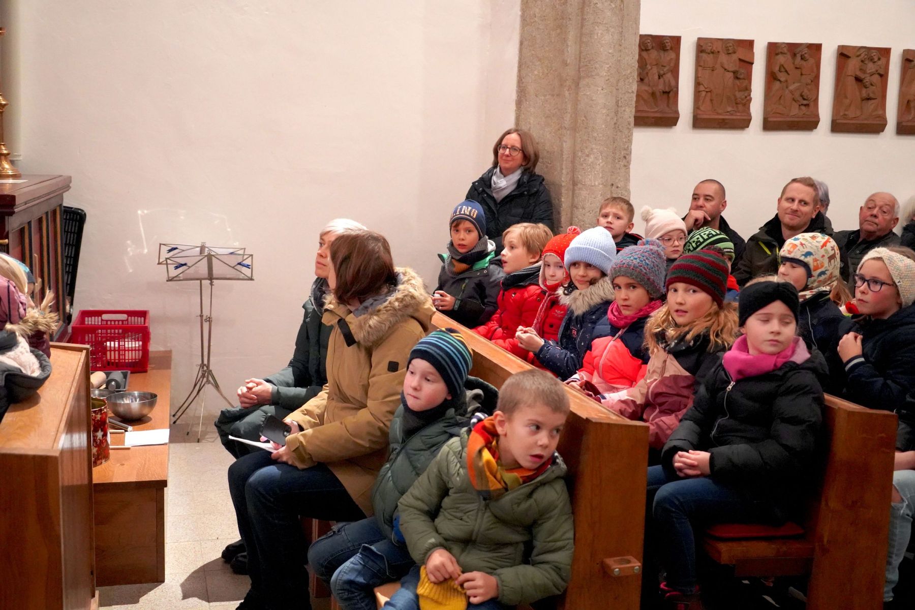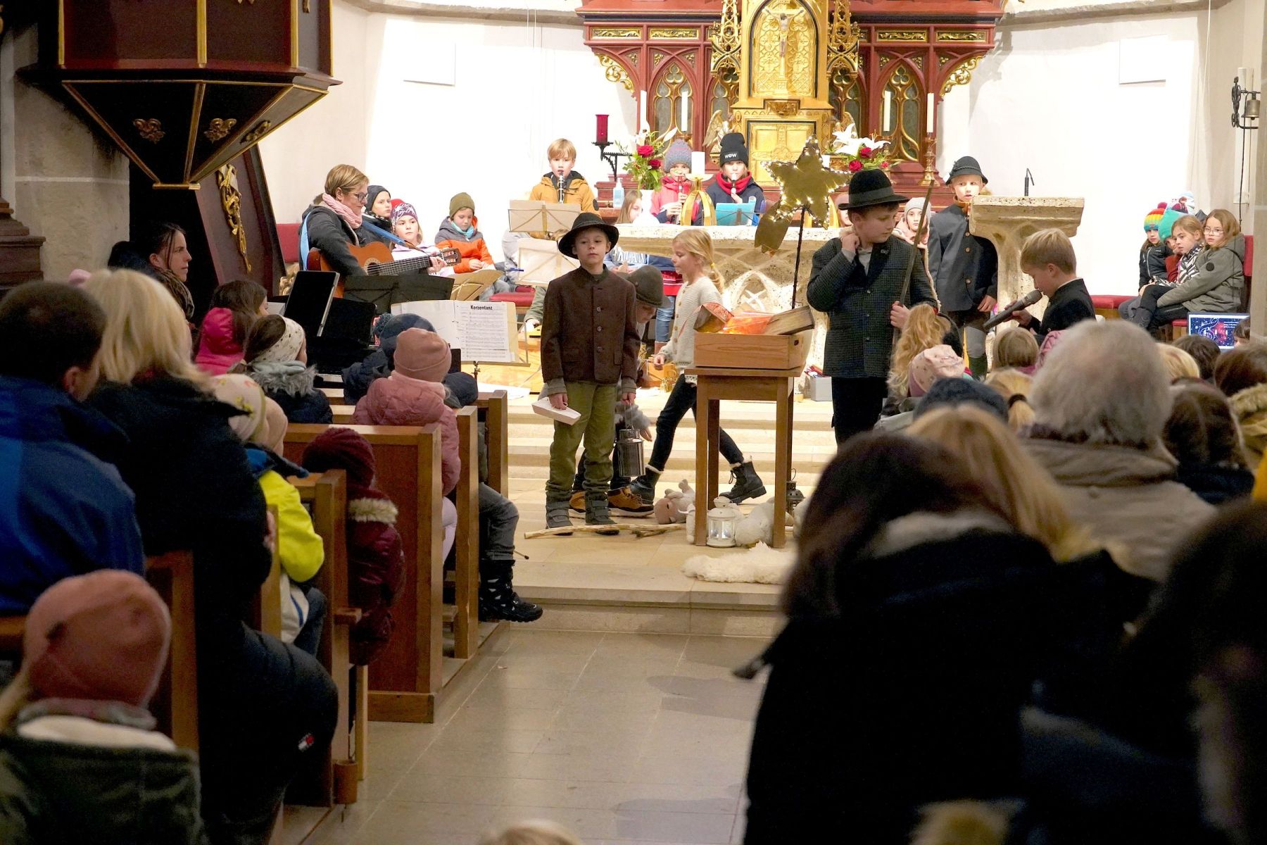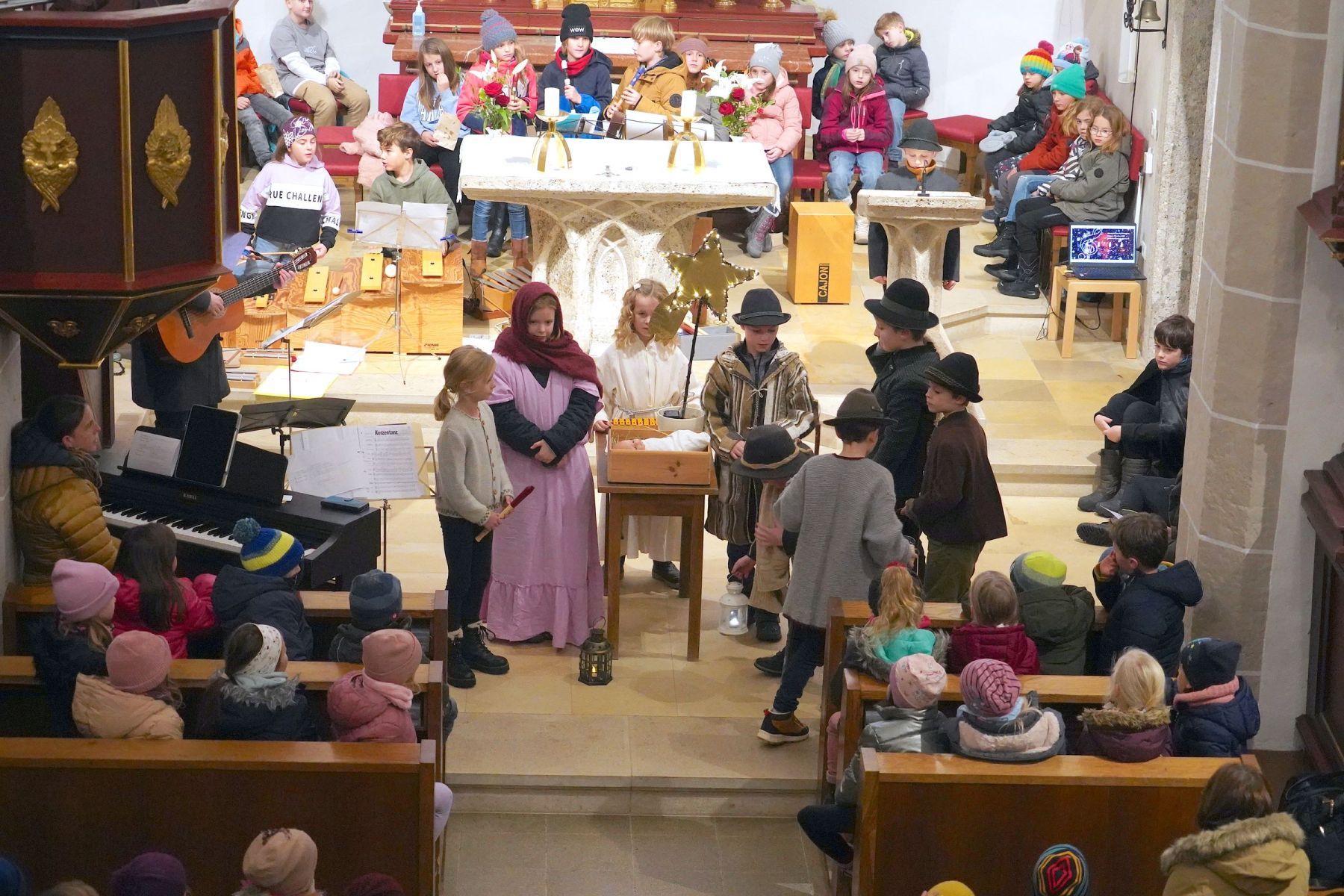 Am Vorplatz der Volksschule gab es die verschiedensten Schmankerl und Köstlichkeiten für jeden Geschmack, die von den Vereinen des Ortes vorbereitet waren. In der Kekserlbackstube für Kids wurde fleißig Teig gerollt und gebacken, in der Bücherei gab es Vorlesungen und ein Höhepunkt war um 16:00 Uhr ein Adventsingen mit Hirtenspiel der Musikvolksschule in der gegenüber liegenden Pfarrkirche, die bis auf den letzten Platz belegt war. Der Riesen Applaus belohnte die vielen Kinder der Schule mit ihren Lehrerrinnen für diesen perfekten Auftritt.
